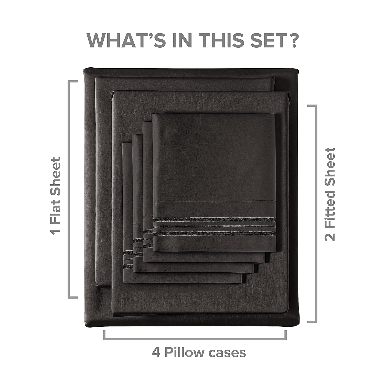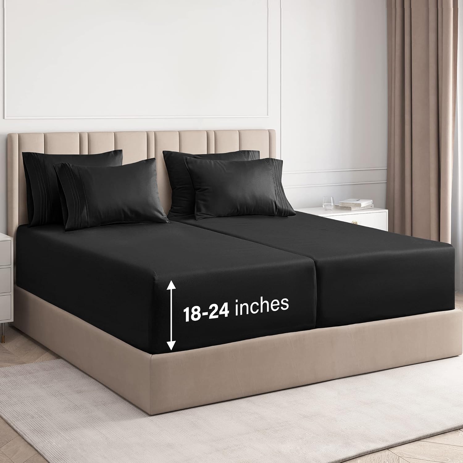 Extra Deep Split King Sheet Set - 7 Piece Breathable & Cooling Sheets - Hotel Luxury Bed Sheets Set - Easy Fit - Soft, Wrinkle Free & Comfy Sheets Set - Black Sheet Set W/Extra Deep Pockets