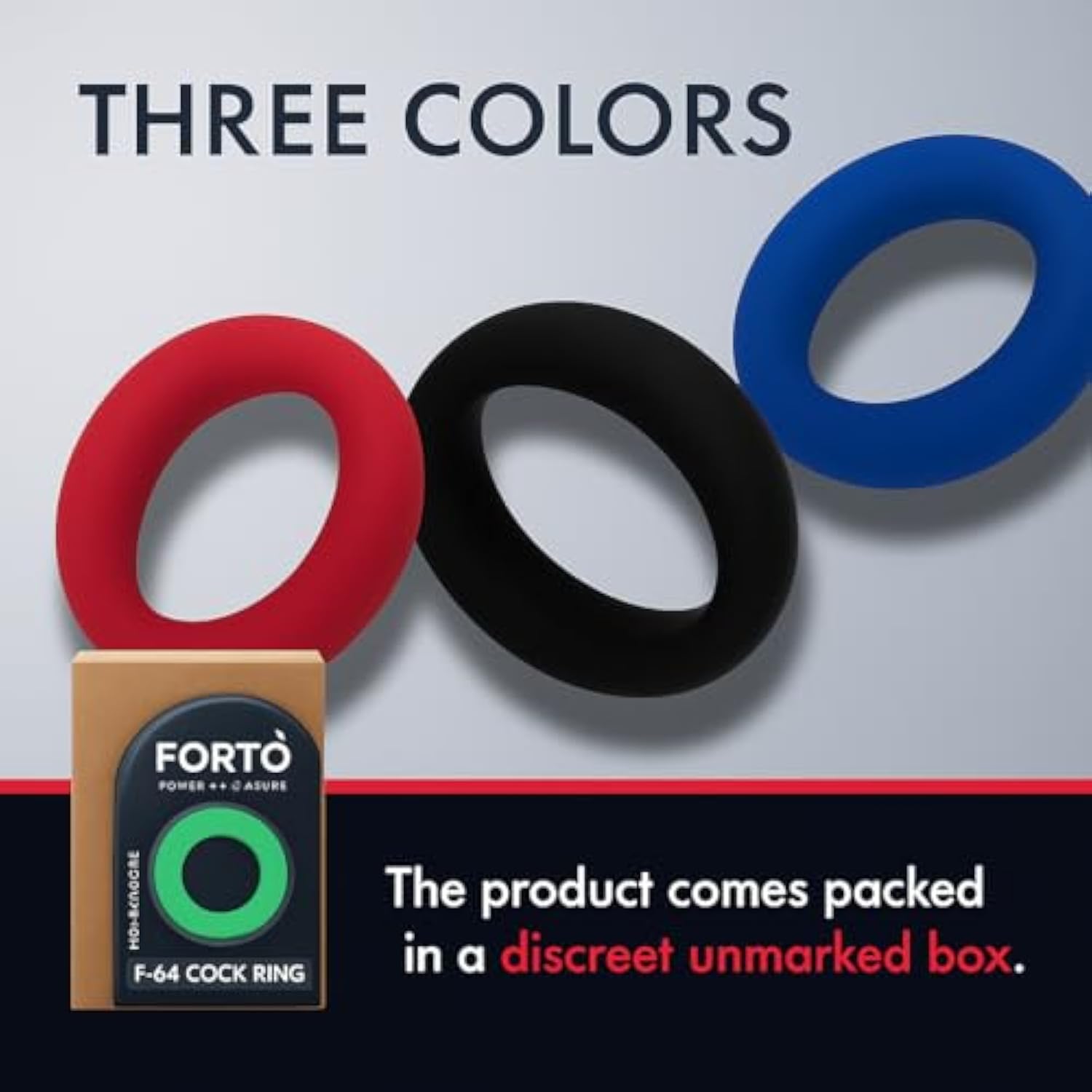 Extra-Wide Design For Intense Support – The F-64 Features A Thick, Wide Band Designed To Provide Greater Pressure Around The Penis Or Testicles, Helping Achieve Harder, Longer-Lasting Erections. | | Firm Yet Flexible Liquid Silicone – Made From Body-Safe Liquid Silicone, This Cock Ring Is Soft, Stretchy, And Comfortable, Yet Firm Enough To Intensify Climax And Support Stamina. | | Textured For Added Sensation – Raised Texture On The Inner Surface Offers Enhanced Stimulation With Every Movement, Delivering A More Intense And Pleasurable Experience. | | Stretch-Fit In 3 Sizes Colors – Choose From Small, Medium, Or Large In Red, Black, Or Blue. Each Ring Stretches Up To 2X Its Size, Offering A Snug But Flexible Fit For Most Bodies. | | Safe Easy To Clean – Waterproof, Non-Porous, And 100% Silicone. Wash With Mild Soap And Warm Water After Each Use. Recommended Wear Time: 30 Minutes Or Less Per Session. | |