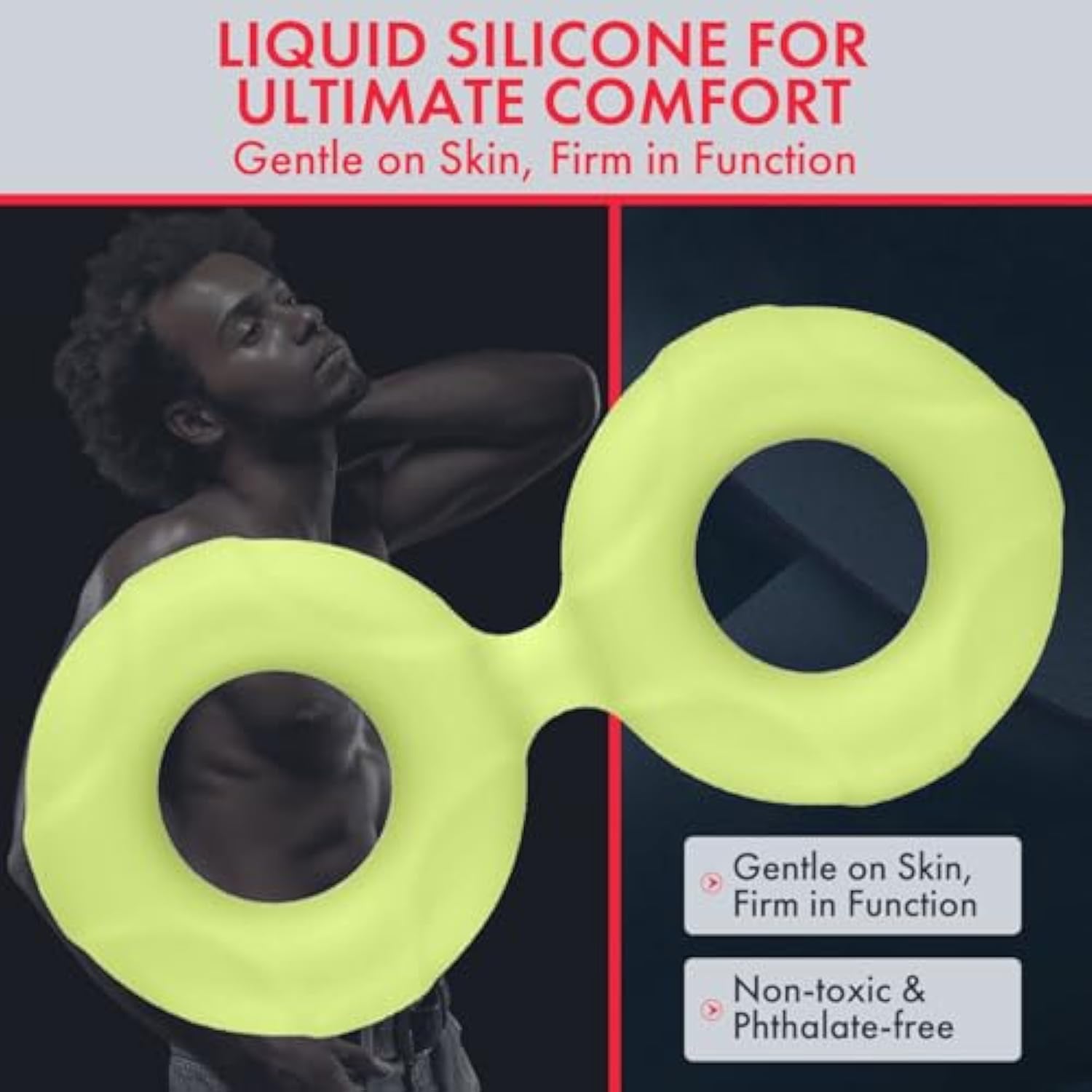 F-81 Liquid Silicone Cock & Ball Double Ring – Soft Stretchy C-Ring For Larger Erections – Waterproof Dual Band Penis Ring In 3 Sizes & Colors – Black, Blue, Glow (Glow, Medium)