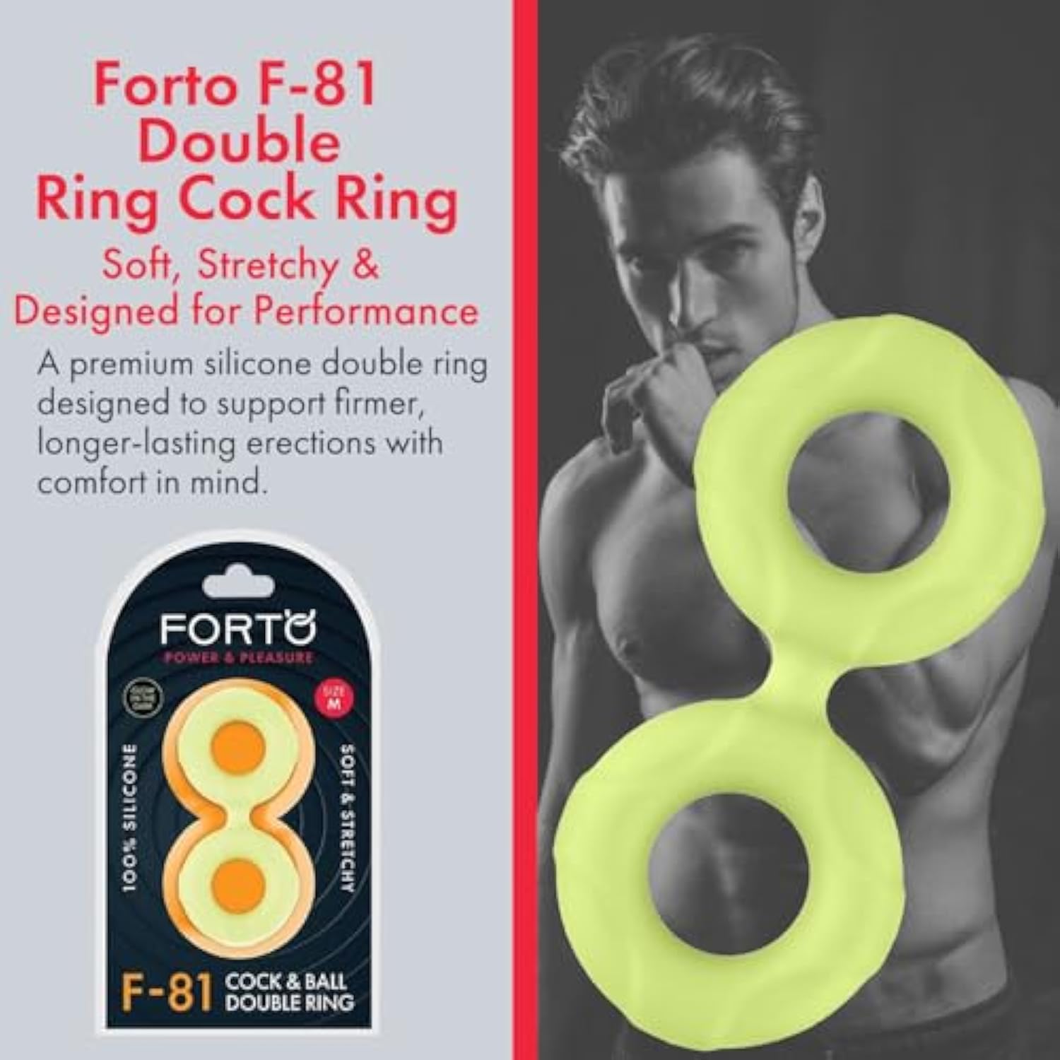 Dual Ring For Maximum Performance – Designed With Two Flexible Bands: One For The Base Of The Penis And One For The Testicles, This Double Ring Helps You Achieve Longer-Lasting, Firmer Erections. | | Premium Liquid Silicone – Ultra-Soft And Stretchy, ’S Body-Safe Liquid Silicone Delivers A Comfortable, Snug Fit While Enhancing Sensitivity And Sensation. | | Waterproof Easy To Clean – 100% Waterproof And Non-Porous For Simple Hygiene. Perfect For Wet And Wild Adventures In The Shower Or Bath. | | Multiple Sizes Colors – Available In Small, Medium, And Large For Your Perfect Fit. Choose From Bold Black, Playful Blue, Or Luminous Glow-In-The-Dark. | | Discreet Travel-Friendly – Lightweight, Durable, And Easy To Store Or Pack, The F-81 Is Ideal For On-The-Go Pleasure Or Discreet Use At Home. | |