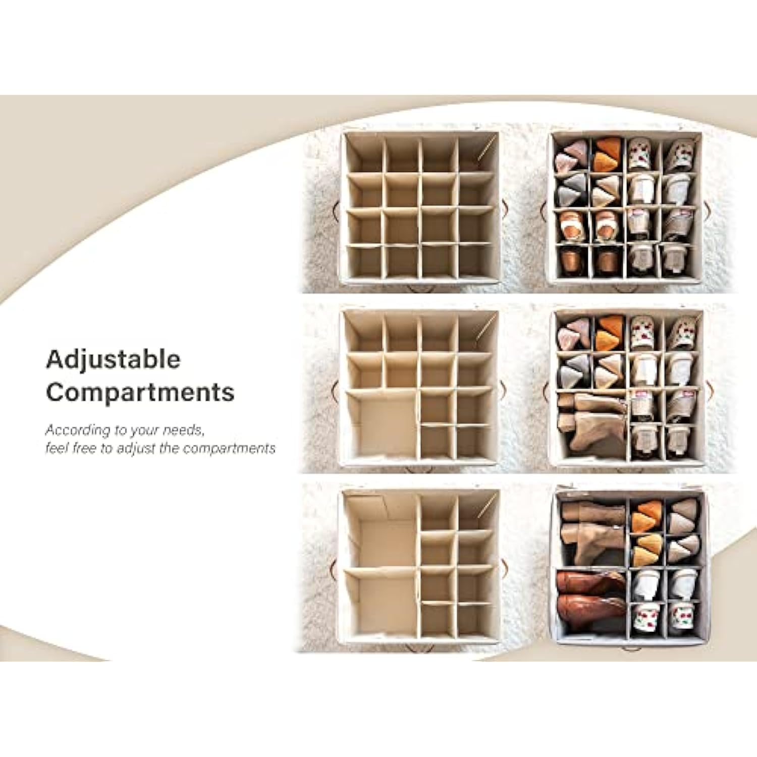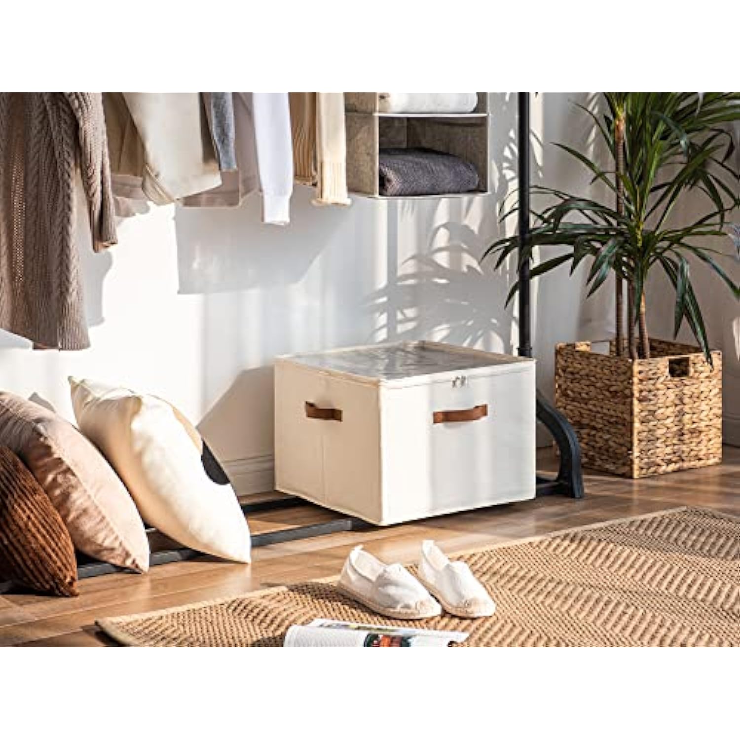 Fabric Shoe Storage Bins with Clear Cover, Fits 16 Pairs