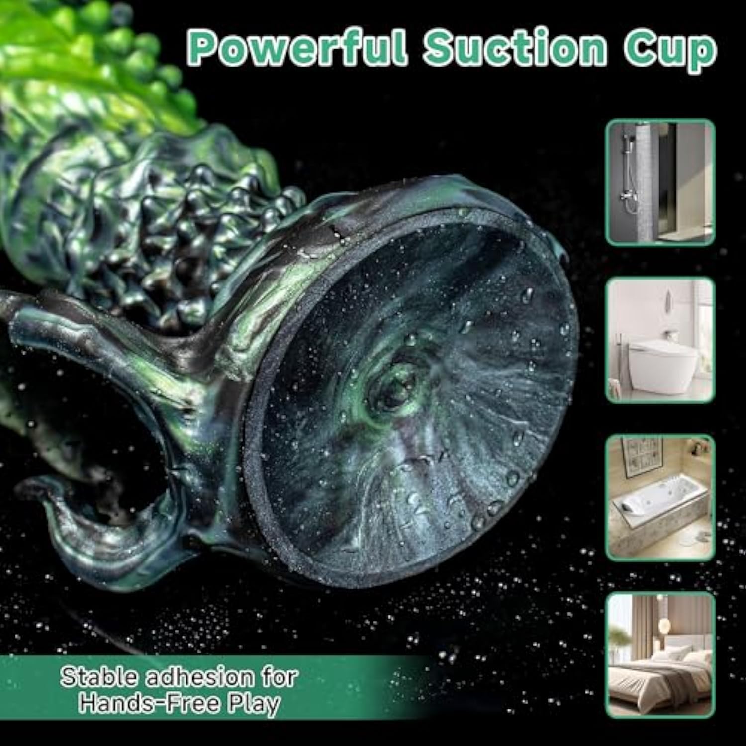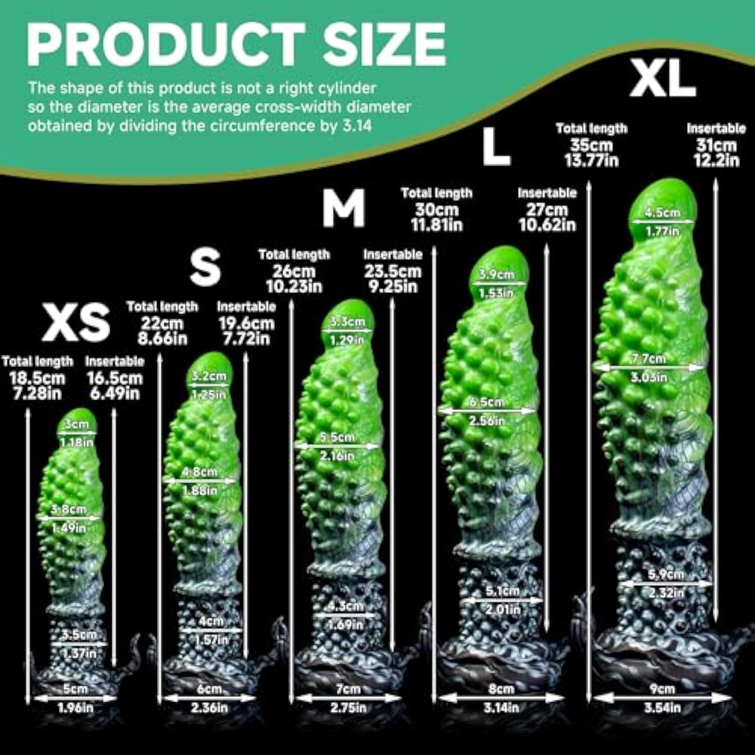 - ?? Fantasy Spiked Monster Dildo: Experience Unique Sensations With This Green And Black Spiked Dildo, Meticulously Designed With A Slender Head, Thick Middle, And Tapered Lower Section. The Central Part Features Large Spikes At The Front And Wave-Like R
