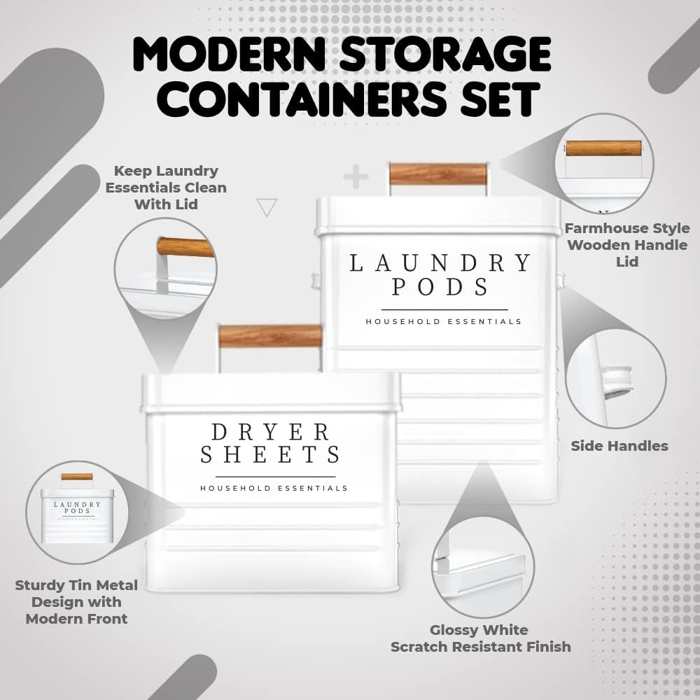 - Packaging: Our laundry pods and dryer sheets containers set includes our exclusive, high quality packaging which makes this set the perfect gift for any occasion or a gift for your laundry room. Our packaging makes the product easy to gift wrap and give to a family or friend. laundry organization and storage