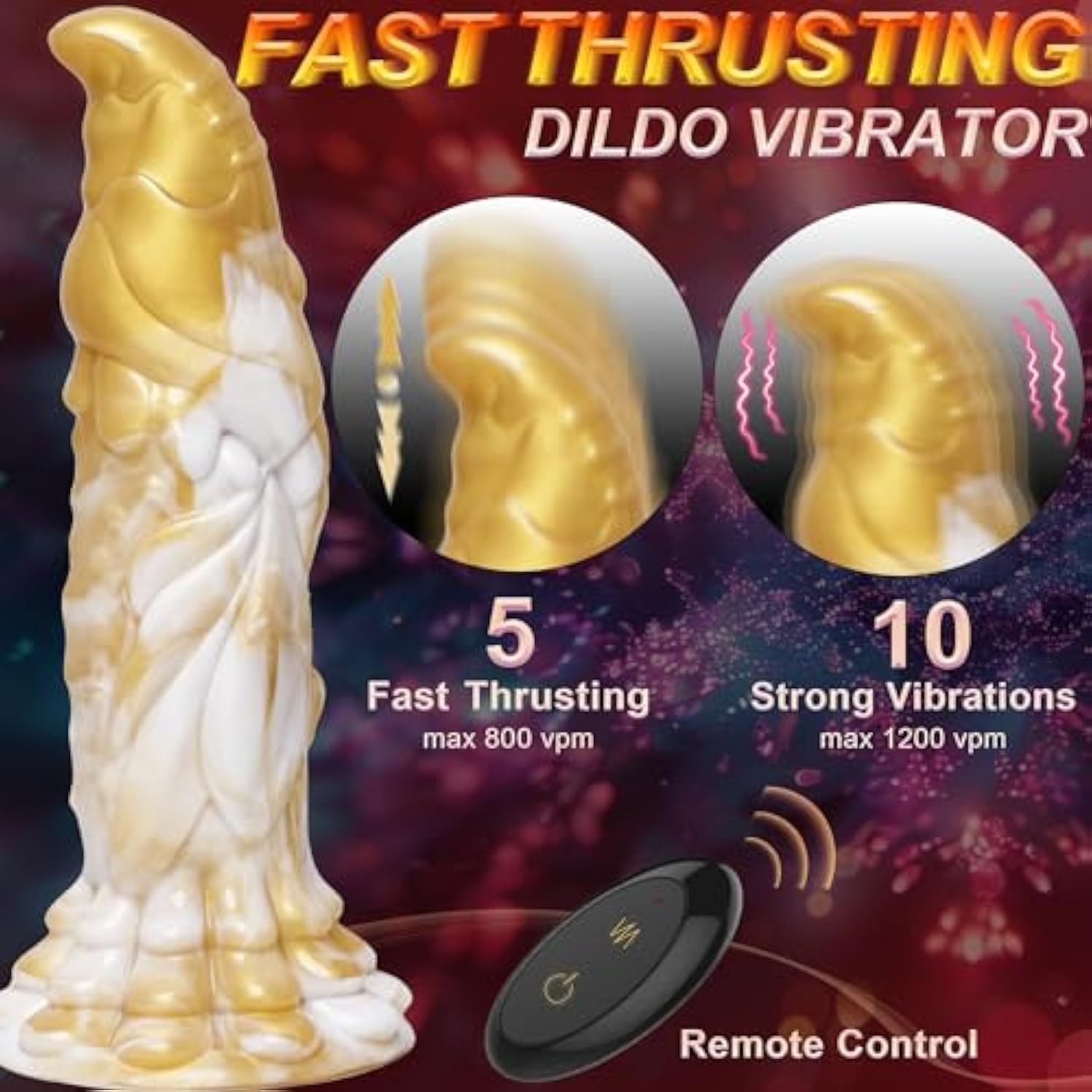 - Faster Thrusting: More Than 10 Times Per Second:With Upgraded Motors, This Fantasy Dildo Sex Toy Has Faster Thrusting And Stronger Vibration Than Ever! It Allows 800 Times Thrusting 1200 Times Vibrating Per Minute,Which Is Far Beyond The Traditional Thr
