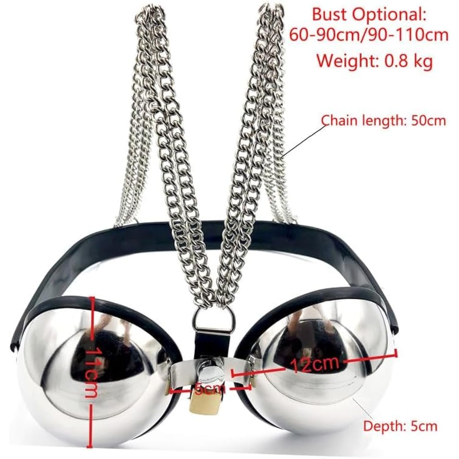 Female Chastity Device Bra Stainless Steel Adjustable Bdsm Slave Metal Lockable Underwear Chain Bondage Game Erotic Slave Fetish Sex Toy (Black)