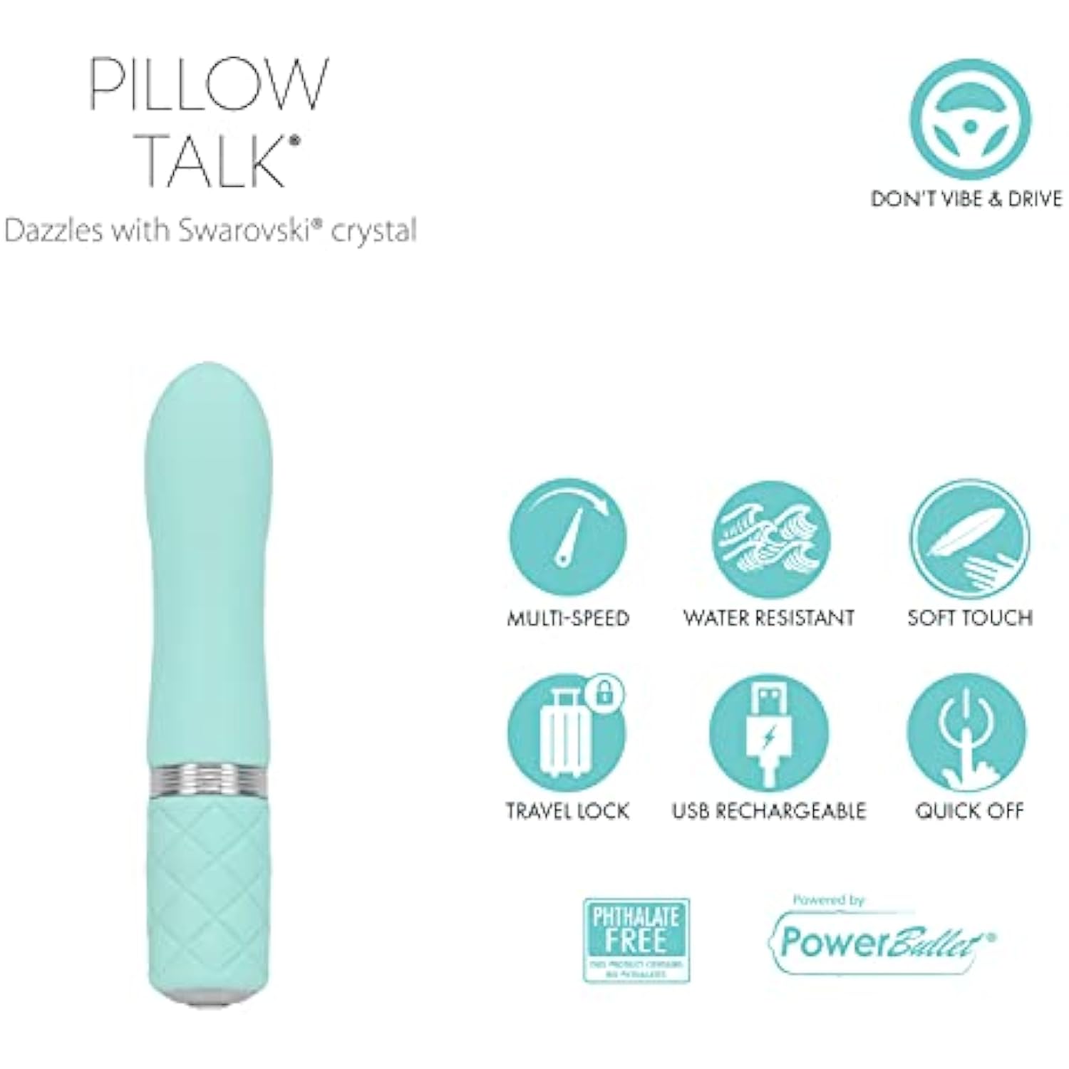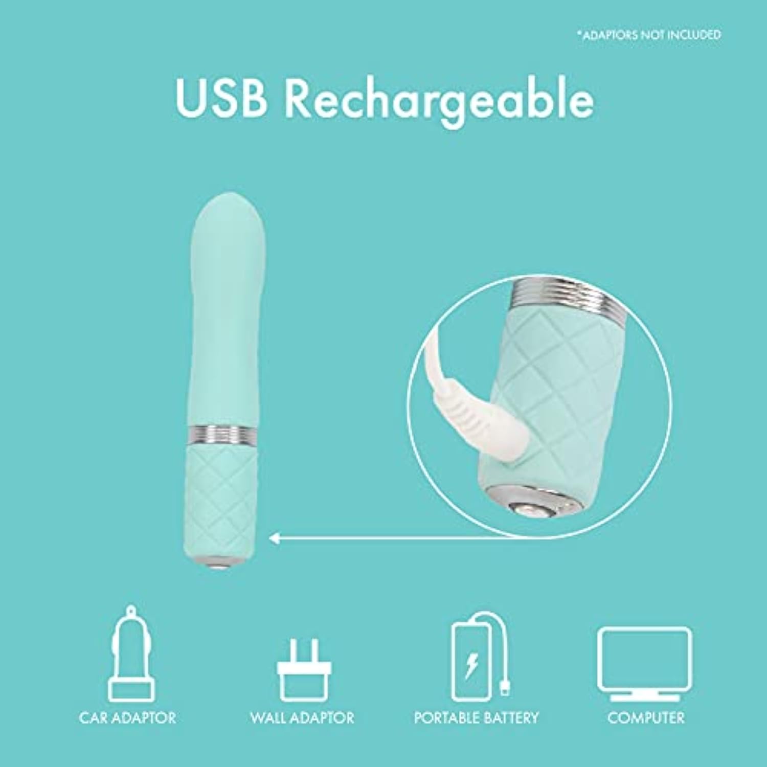 Flirty Vibrating Wand, Premium Silicone With Swarovski Crystal, Deep & Rumbly Powerbullet Vibrations, Rechargeable For Cordless Play (Teal)