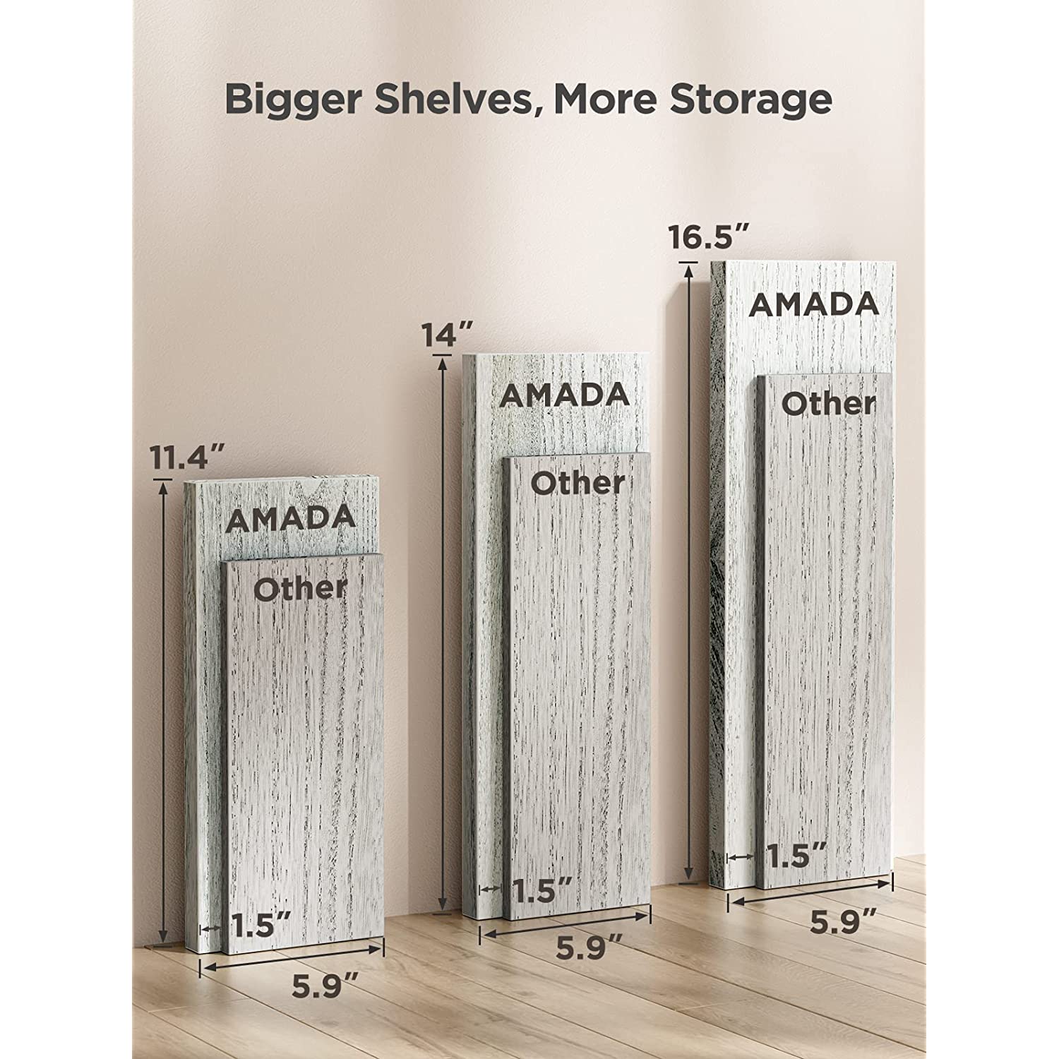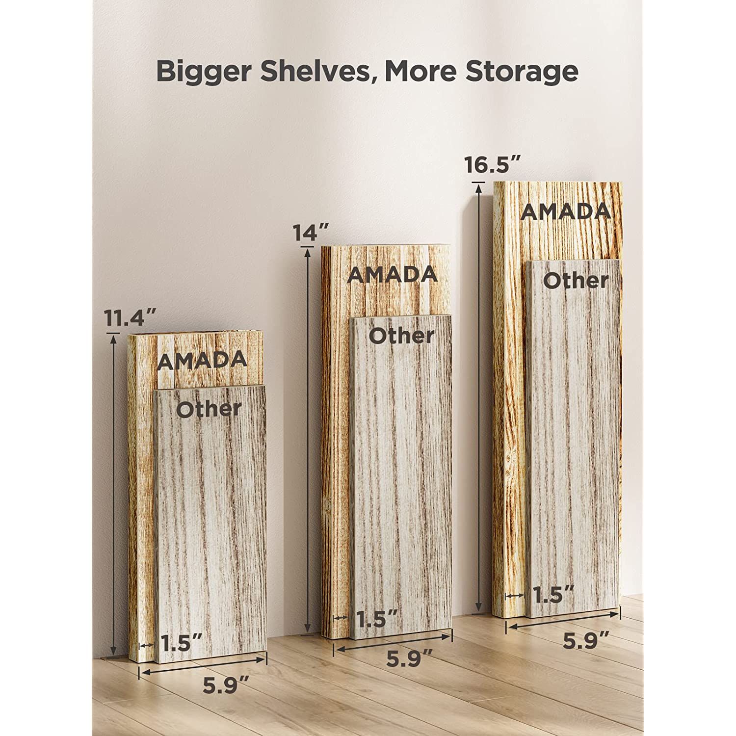 - Size Does Matter: With a size of 16.4 inches, these wall shelves are wider and longer than regular shelves on the market, providing more room and worry-free storage! Large: 16.4 × 5.9 × 0.7 inches; Medium: 14 × 5.9 × 0.7 inches; Small: 11.4 × 5.9 × 0.7 inches. Easy to install within a few minutes with all necessary hardware included.