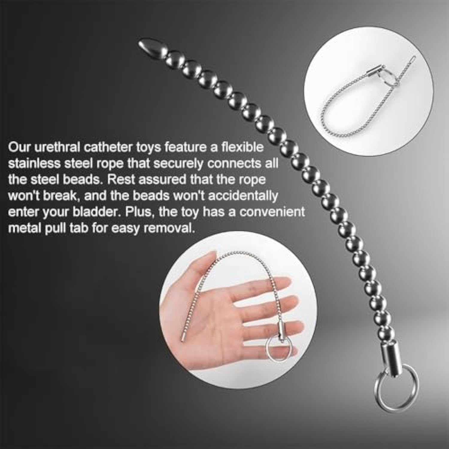 | Multi Beaded Design: Multi Beads Is Quite Smooth, Nice Touch Feelings And Convenient To Insert Inside. Multi Bead Can Stimulate Your Urethra Again And Again During The Insertion Process, Making It Easier For You To Get An Orgasm | | Experience An Explosive Orgasm: The Urethral Sounds Dilator Is 8.85 Inch Long And 5 Diameters To Choose From: 5Mm, 6Mm, 7Mm, 8Mm, 10Mm,You Can Gradually Explore And Expand Your Urethral Size. It Can Fully Stimulate The Nerve-Rich Erogenous Zone, Allowing You To Experience An Explosive Orgasm And Improved Sexual Response | | Durable And Safe Design: Our Urethral Catheter Toys Feature A Flexible Stainless Steel Rope That Securely Connects All The Steel Beads. Rest Assured That The Rope Won'T Break, And The Beads Won'T Accidentally Enter Your Bladder. Plus, The Toy Has A Convenient Metal Pull Tab For Easy Removal | | Instructions For Use: Please Clean With Hot Water Before Use. Adding A Water-Soluble Lubricant During Use Improves Comfort. Pay Attention To The Intensity Of Use And Choose The Appropriate Intensity According To Your Physical Condition. If You Feel Unwell During Use, Stop Using It Immediately | | Discreet Packaging And Support: Your Privacy Matters To Us. We Provide Neutral Packaging Without Any Trade Names. If You Have Any Questions Or Concerns, Our Dedicated