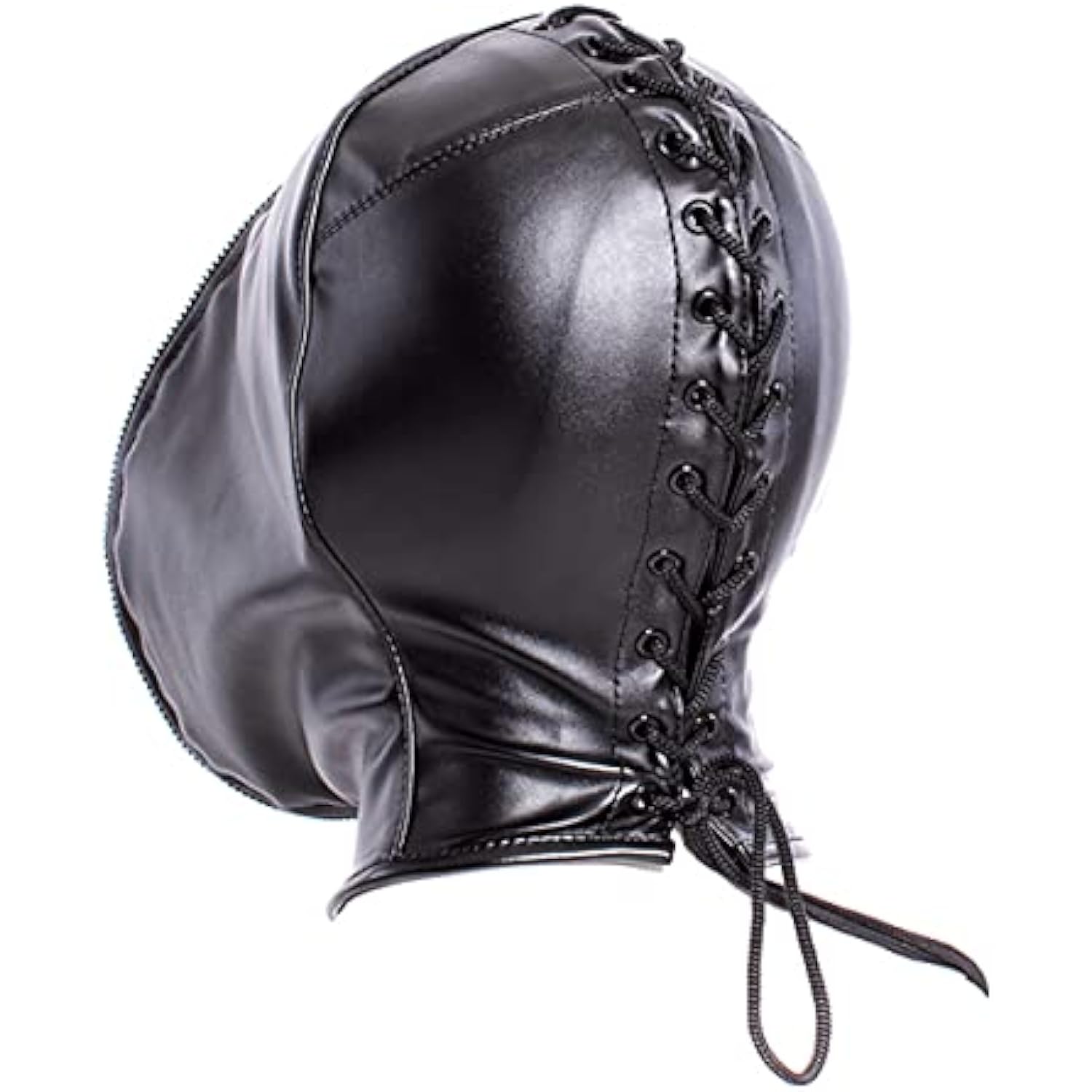 Full Face Double Layer Headgear - Zipper Restraint Head Hood Leather Bondage Masks Bdsm Fetish Breathable Hood
