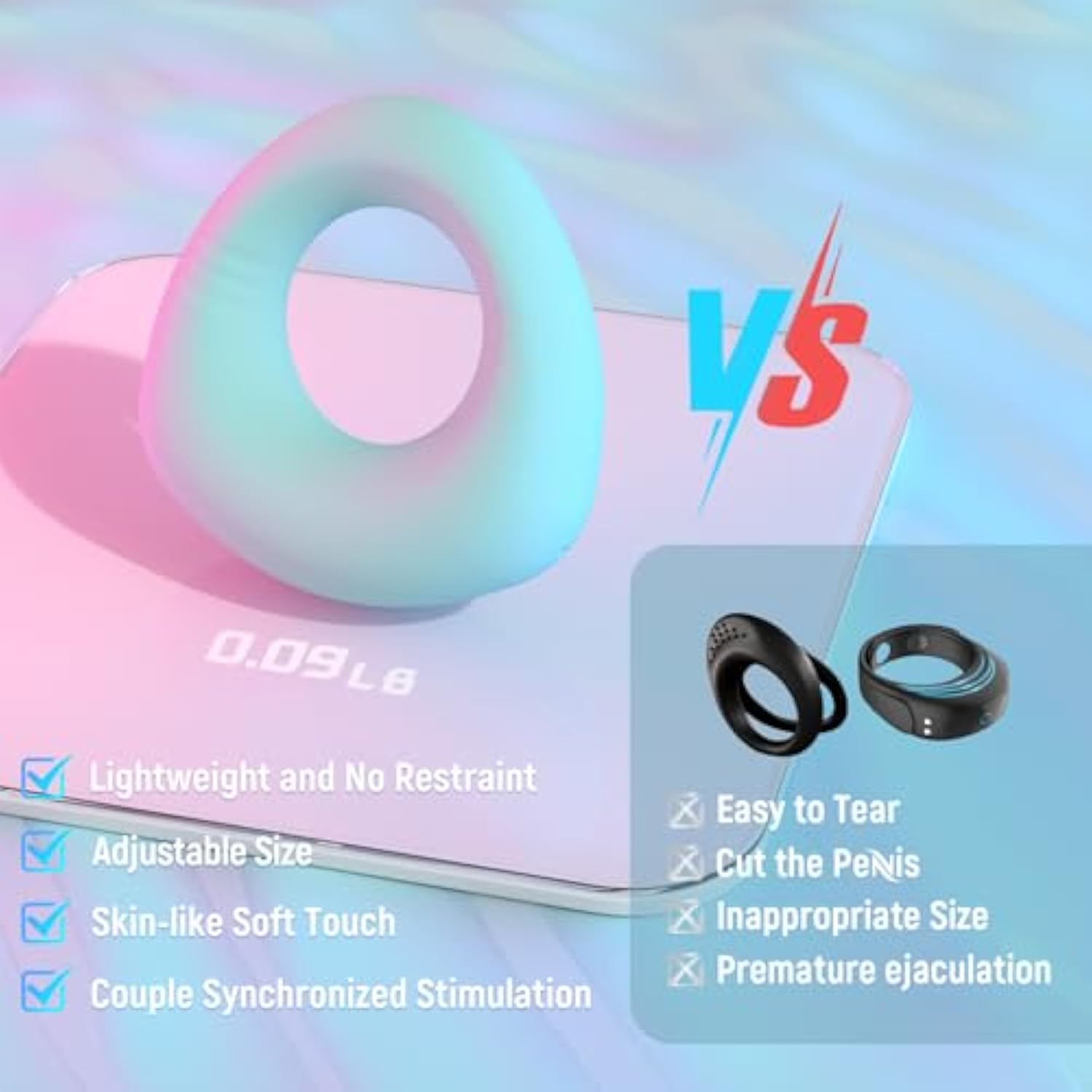 Full Liquid Silicone Soft Vibrating Cock Ring, 0.09Lb Mint Green App Pleasure Penis Ring Vibrator Couples Adult Sex Toys For Men Women, 10 Vibrations Male Couple Sex Toy Game For Men Erection