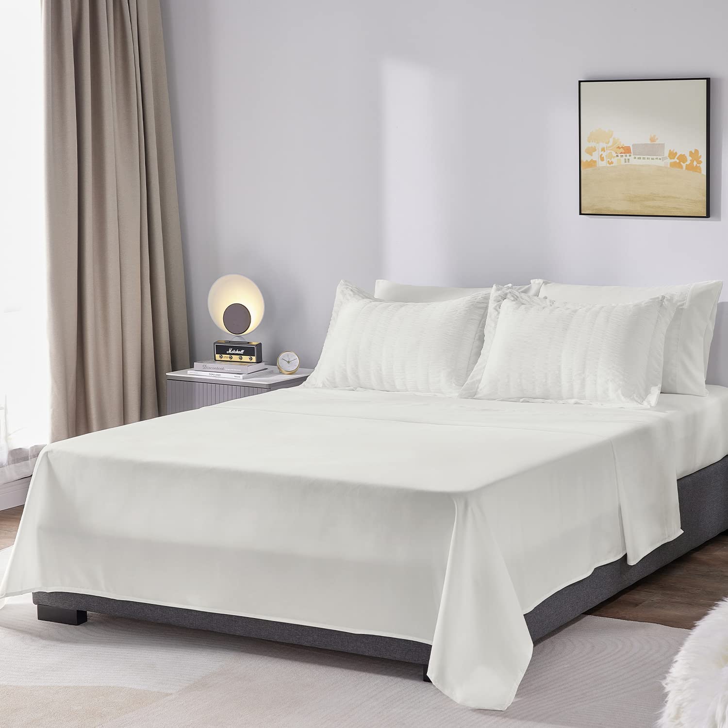 - What You Can Get: Full Size 7-Piece Seersucker Bed In A Bag Includes 1 Comforter 82"X86", 2 Pillow Shams 20"X26", 1 Flat Sheet 81"X96" , 1 Fitted Sheet 54"X75"+14" And 2 Pillowcases 20"X30". Our Bed In A Bag Is Packaged In A Vacuum Bag, So You Can Dry It In Low Heat Or Tap The Comforter Gently While Baking It In The Sun To Fluffy Aga