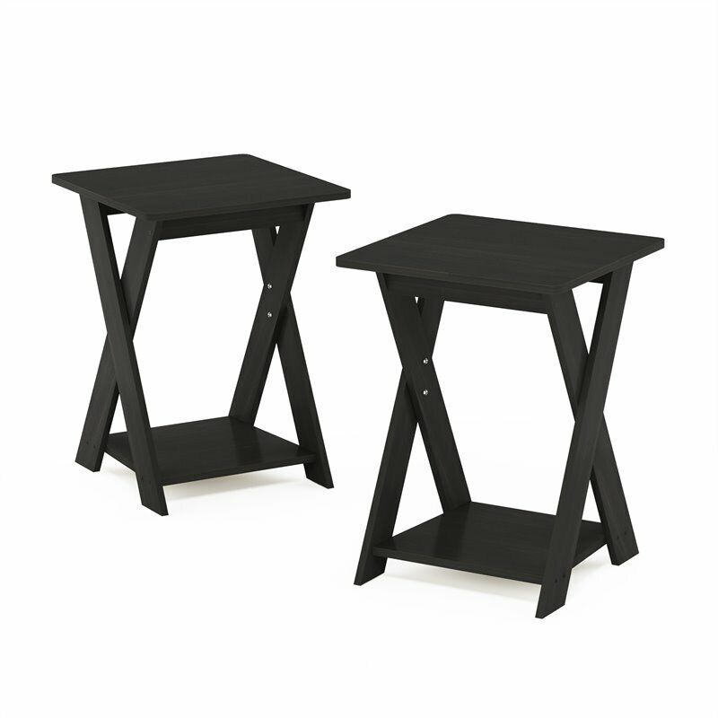 Furinno Modern Wood Simplistic Criss-Crossed End Table in Espresso (Set of 2)