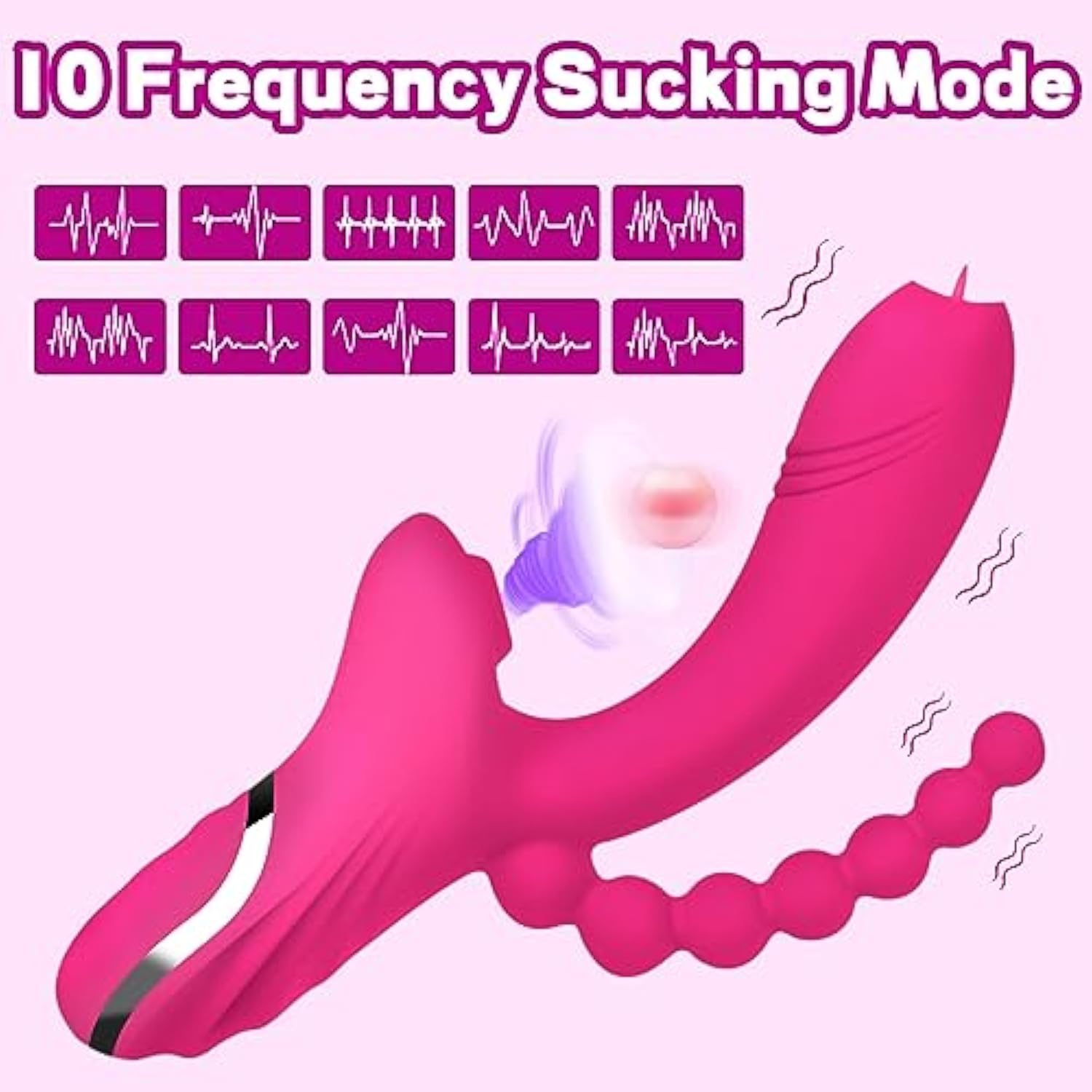 G-Spot Bunny Vibrator Vibrations/Sucking 3 In 1 Vibrators With Vibrating Pull Beads, Waterproof Clitoral Nipple Anal Stimulato, Sex Toys.(Red)
