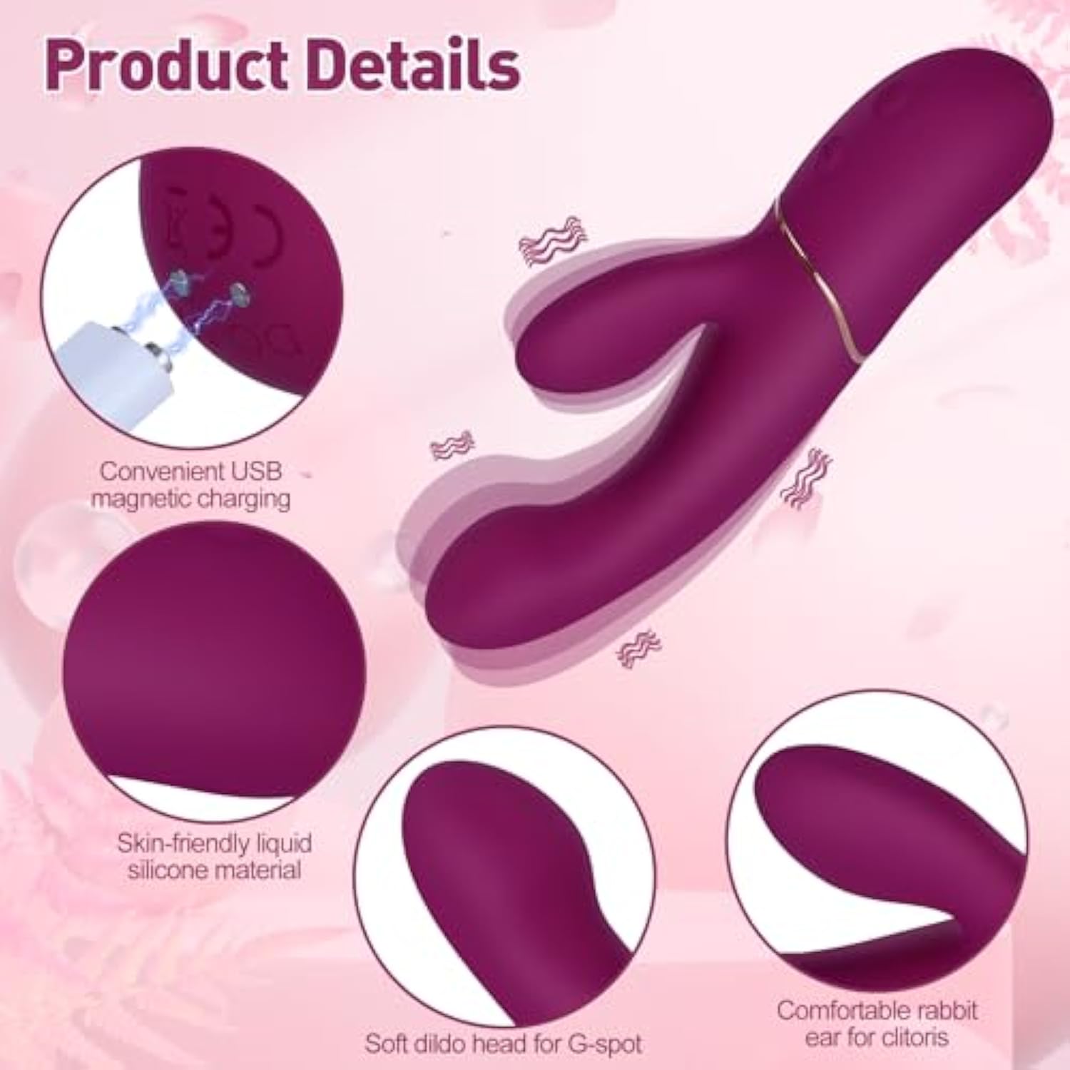 G Spot Vibrator Adult Sex Toys For Women, Female Thick Clitoris Stimulation Device Rabbit Dildo With Powerful Dual Motors