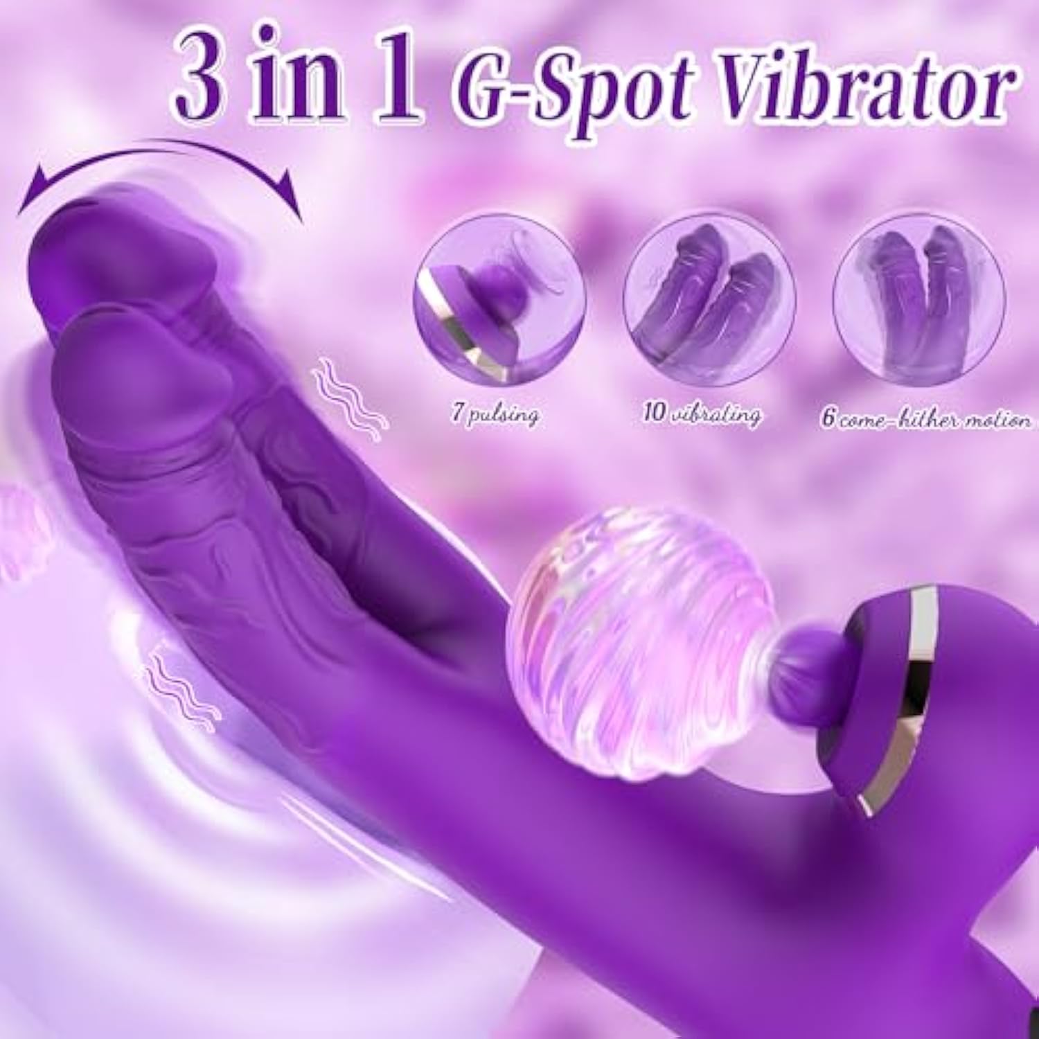 G Spot Vibrator Sex Toys For Women, 3 In 1 Dual Dildo Rabbit Vibrators With 6 Come-Hither Motion & 10 Vibrating & 7 Pulsing Modes, Finger Vibrator Female Adult Toy For G Spot Clit Nipple Stimulation