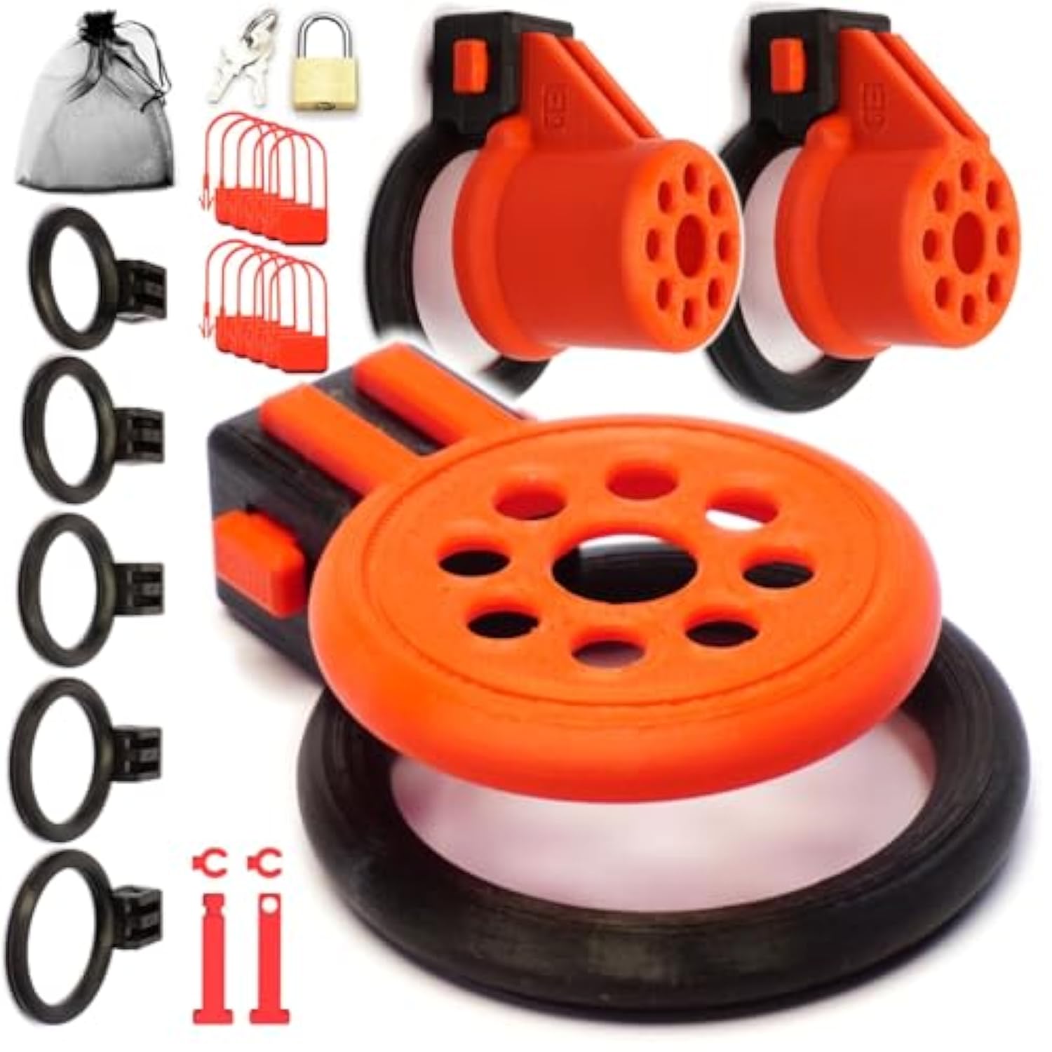 | Revolver-R8, Revolver-R30 And Revolver-R40 Penis Cages Rings, [Heights: 1.57In, 1.18In, 0.32In (40Mm, 30Mm, 8Mm), Inner Diameter 1.42In (36Mm)], | | 5 Rings, Inner Diameter: 1.65In, 1.77In, 1.89In, 2.05In, 2.17In (42Mm, 45Mm, 48Mm, 52Mm, 55Mm), | | Modern, Quick Fastening (1 Pcs.) With Pins (2 Pcs.), | | Padlock With Keys, | | 10 Disposable Fasteners And One Reusable Insert, | | Storage Bag. | |