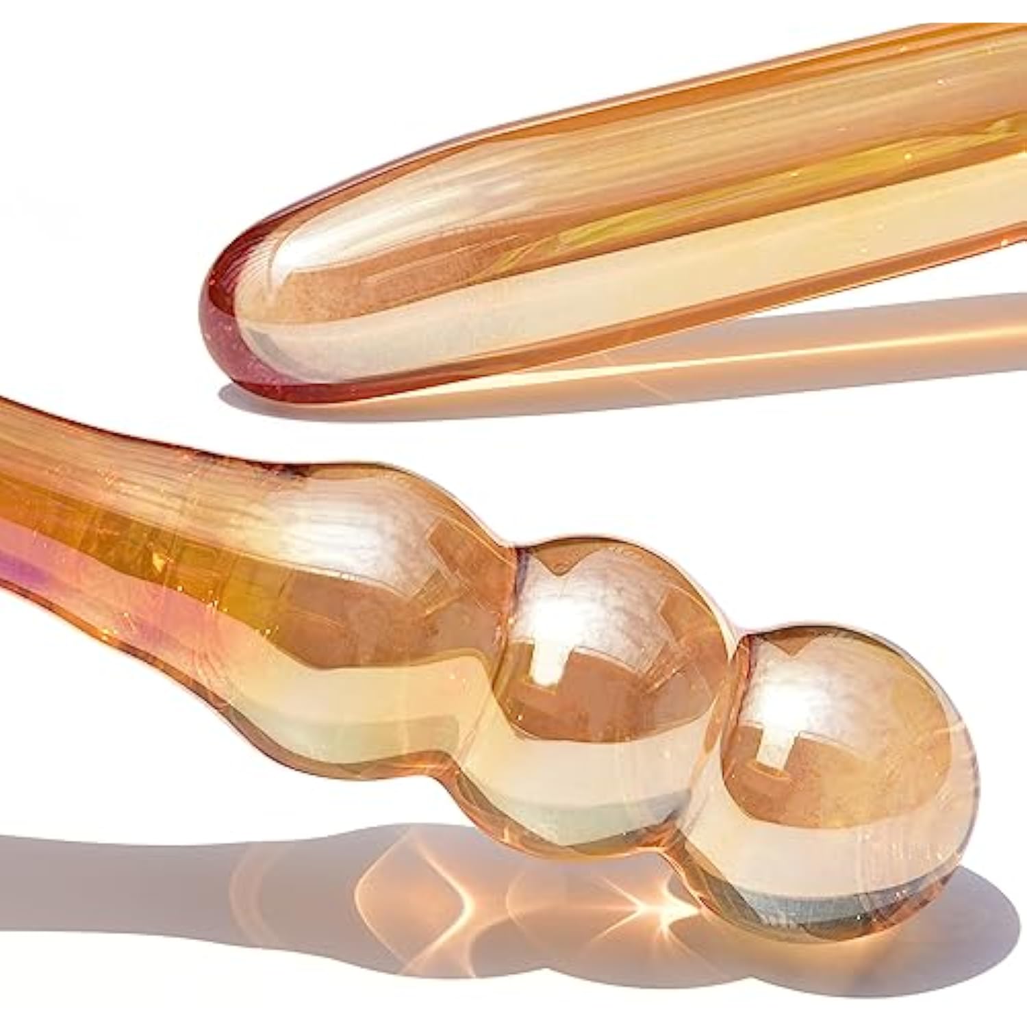 Glass Dildo G-Spot Wand Butt Plug Anal Beads Double Ended Dildo P-Spot Stimulator Fetish Prostate Massager Masturbation Sex Toy For Women Men Golden