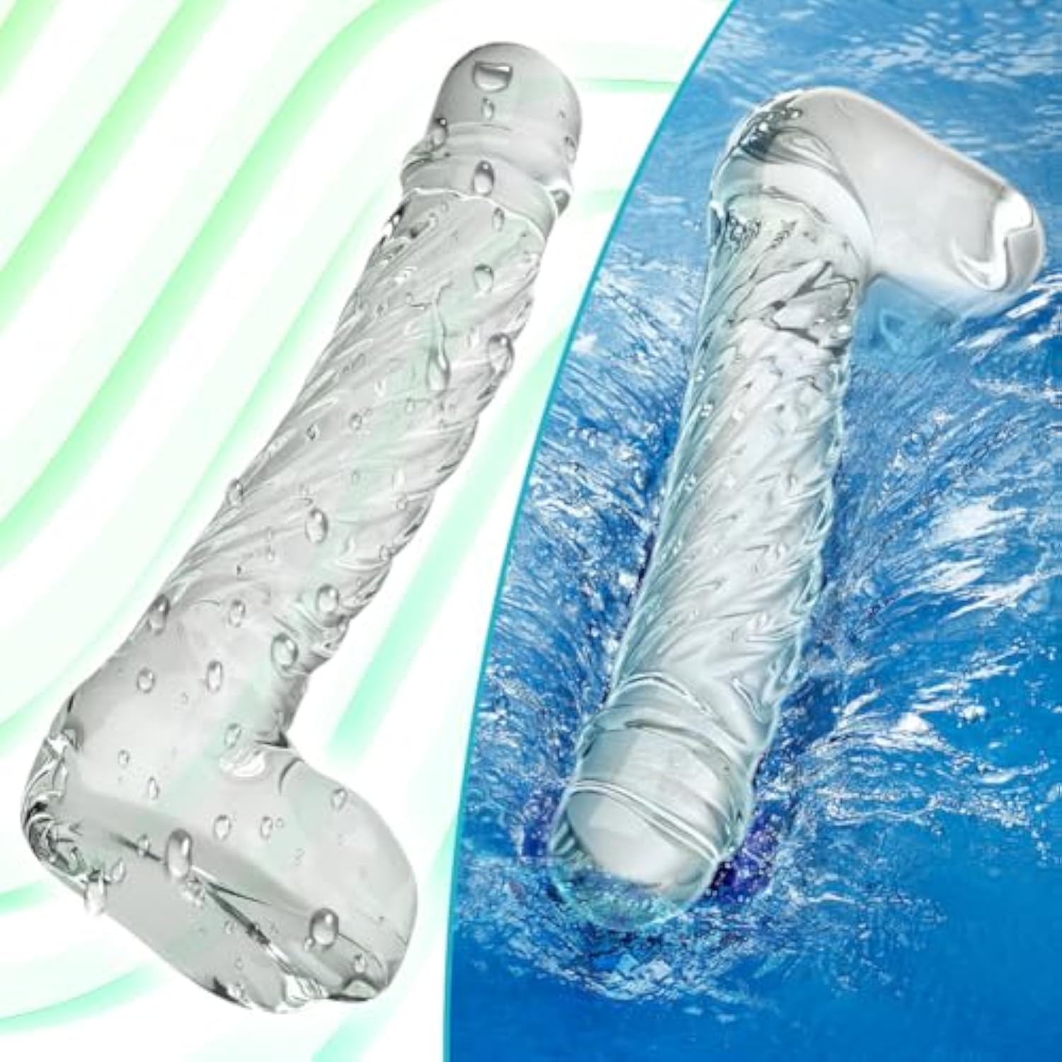 Glass Realistic Dildo G-Spot Stimulation Crystal Butt Plug Anal Sex Toys Prostate Massager Anus Stretcher Pleasure Wand With Raised Spiral Texture