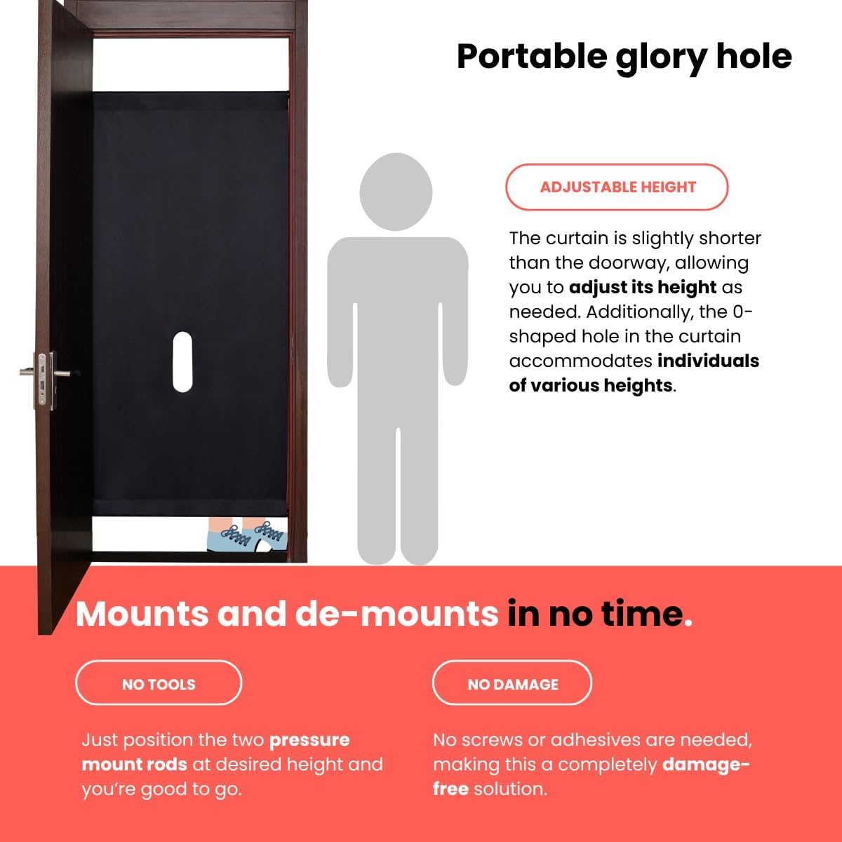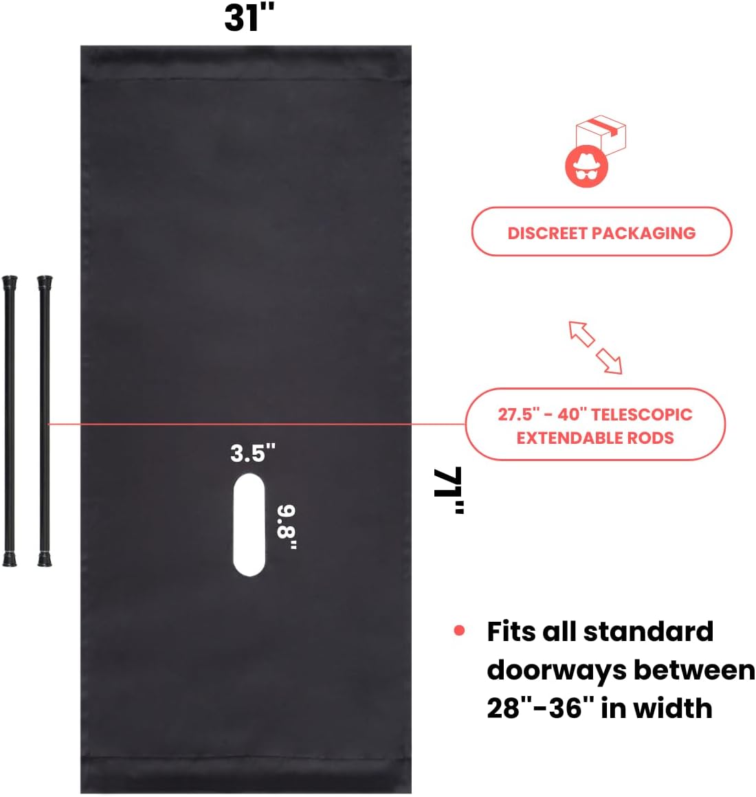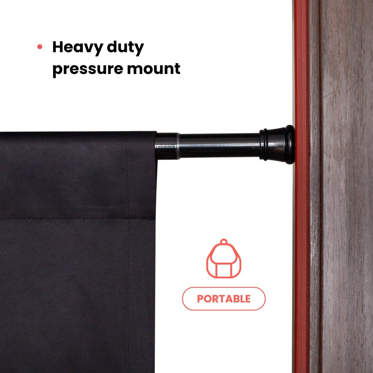 Adjustable Fit for Most Doorways – The tension rods securely mount in doorways between 28-32 inches, accommodating standard door sizes without the need for drilling or adhesives.