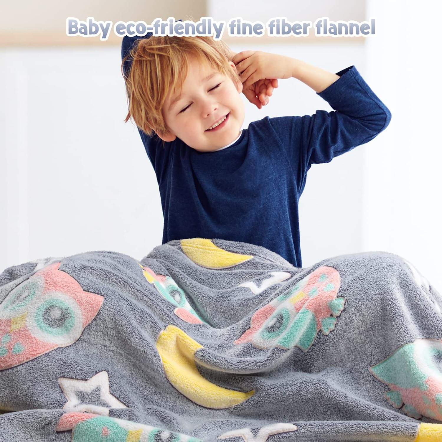 Glow In The Dark Blanket Owl Throw Gifts Toys For Kids Girls Boys Bed Home Bedroom Living Room Decor Soft Cozy Fluffy Lightweight Luminous Plush Blankets Grey 50"X60"