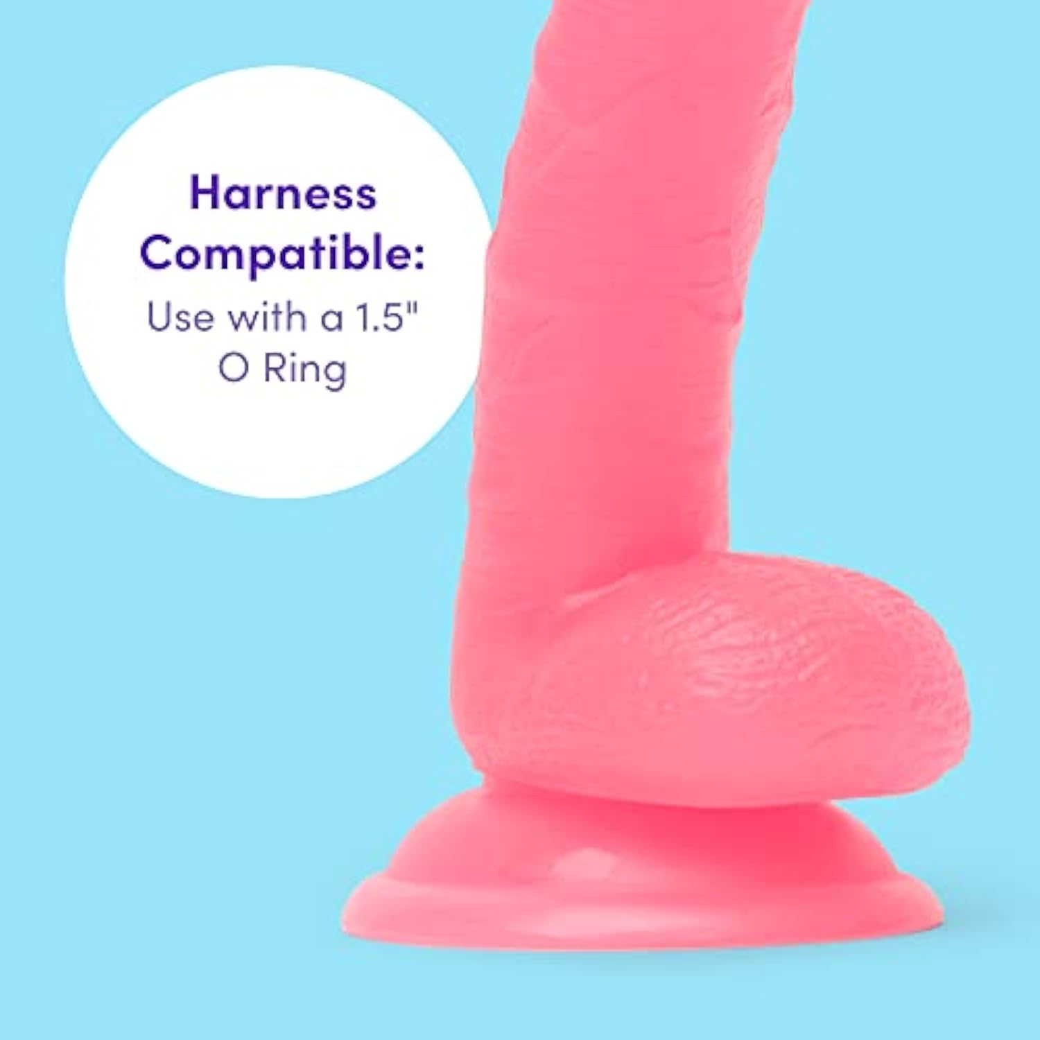 Glow In The Dark Realistic Dildo - 6 Inch With Suction Cup - Flexible Anal Dildo For Women - Harness Compatible Strap On - Adult Sex Toy - Waterproof - Pink