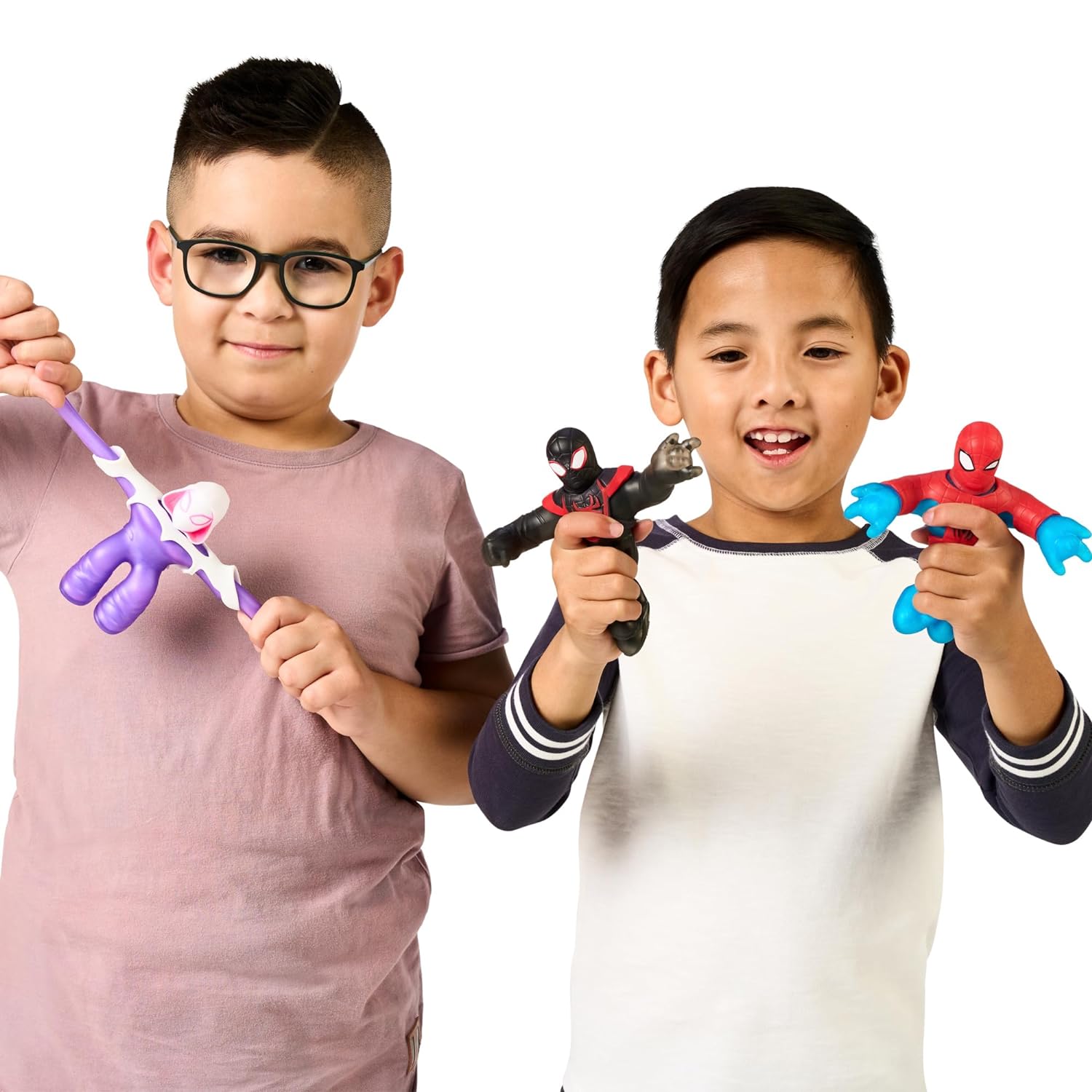 - Contains 3 Exclusive Spider-Man Goo Jit Zu Heroes - Amazing Agility Spider-Man, Stretch Strength Ghost Spider And Venom Blast Miles Morales.