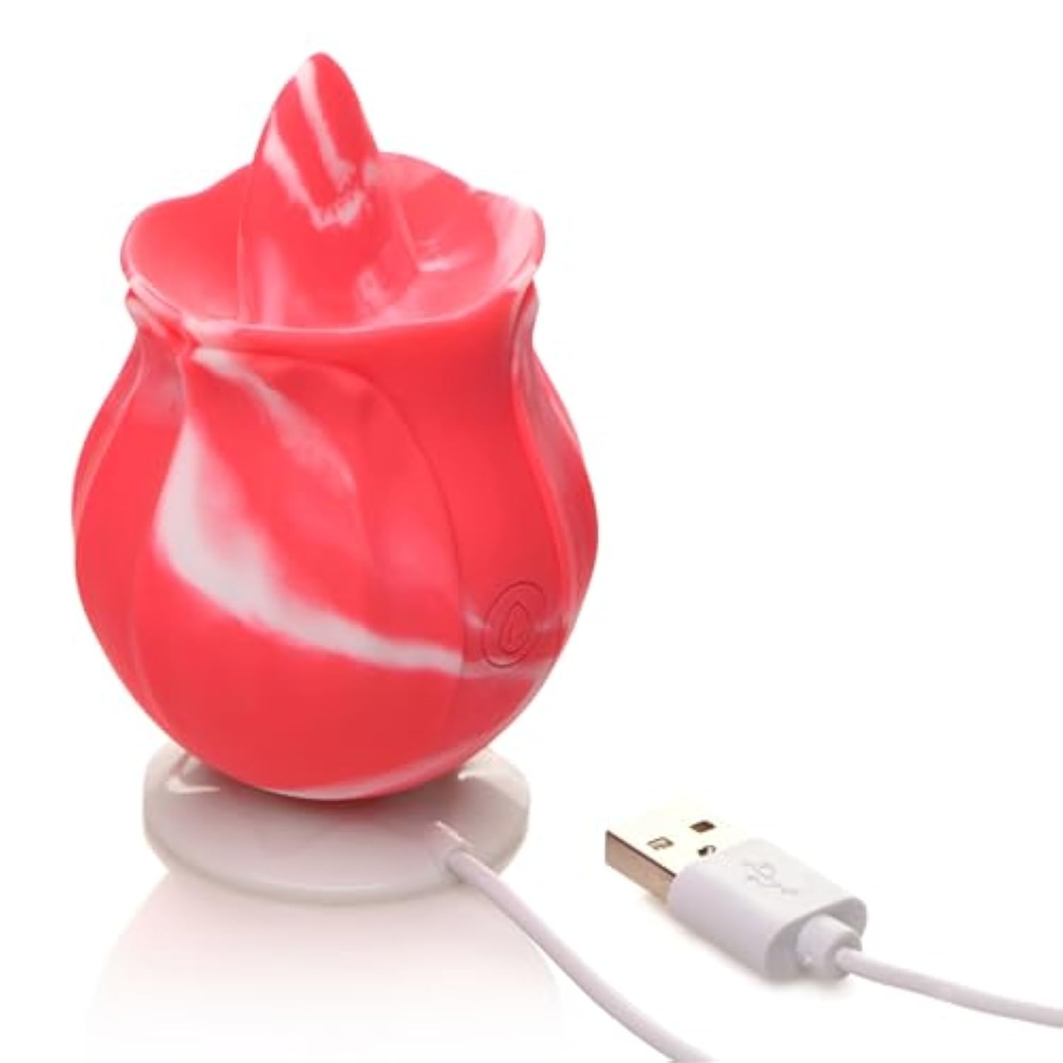 Discreet Rosebud Style: This Gorgeous, Marbled Rose Blossom Has A Luscious, Licking Tongue In The Center That Delivers Orgasmic Pleasure With The Press Of A Button! | | Licking Tongue: Let This Silicone Tongue Simulate Oral Sex For You As You Enjoy 3 Speeds And 7 Modes Of Licking! | | Rechargeable With Charging Stand: Prop Your Rosebud Up On This Discrete Little Charging Station For A Full Charge Every Time! It Will Look More Like A Decoration Than A Sexy Toy! | | Waterproof Silicone: Rated Ipx7 Waterproof, This Rose Can Handle Being Submerged Under Water For Up To 30 Minutes Or Taken Into The Shower For Longer Durations. The Rose Is Made Out Of Phthalate-Free, Premium Silicone. Use Only With Water-Based Lubricants. | | Measurements: Overall Length: 3 Inches. Overall Width: 2.3 Inches, Tongue Length 1 Inches. | |