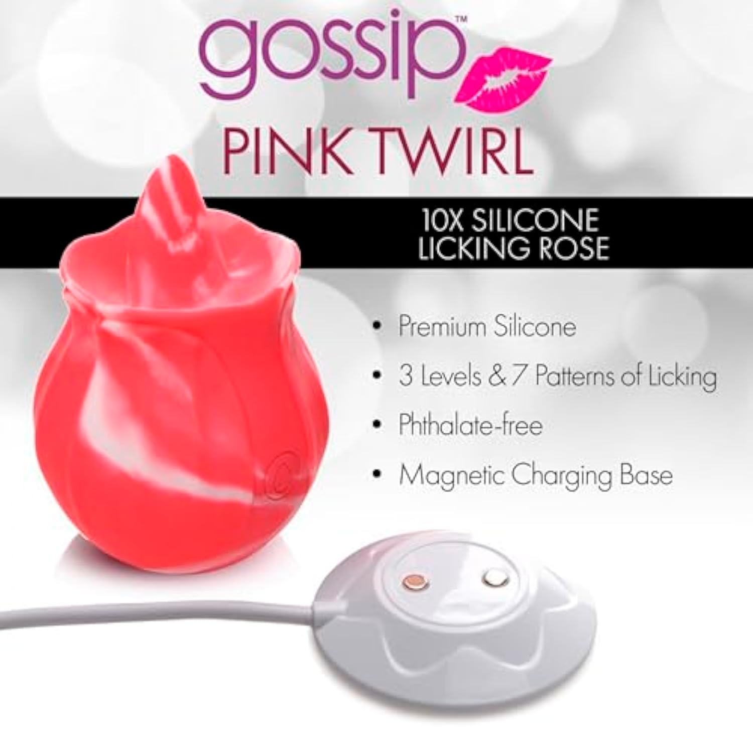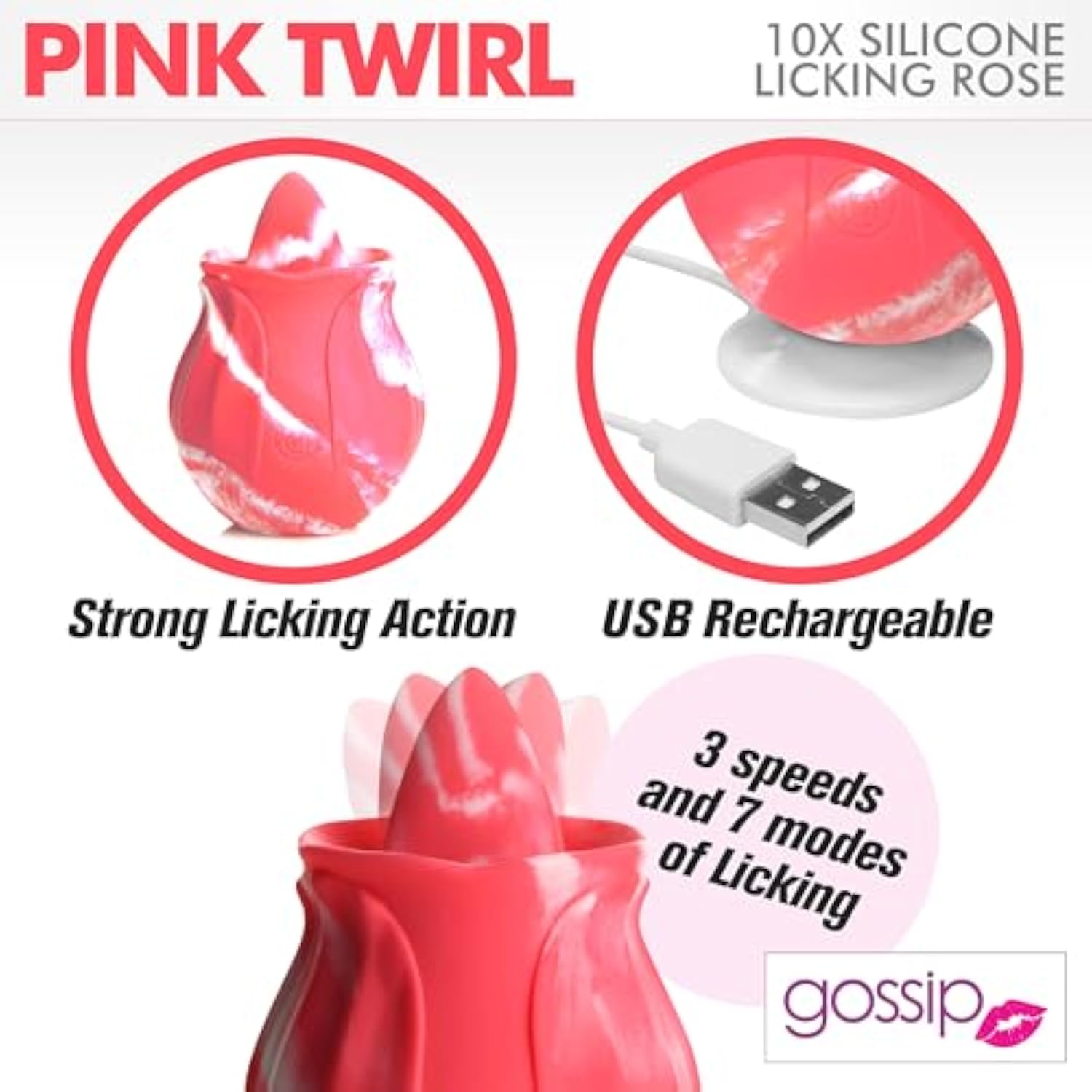 Gossip Pink Twirl 10X Silicone Licking Rose For Women & Couples. Discreet Licking Tongue Rechargeable Ipx7 Waterproof Silicone Rosebud. 2 Pieces, Pink.