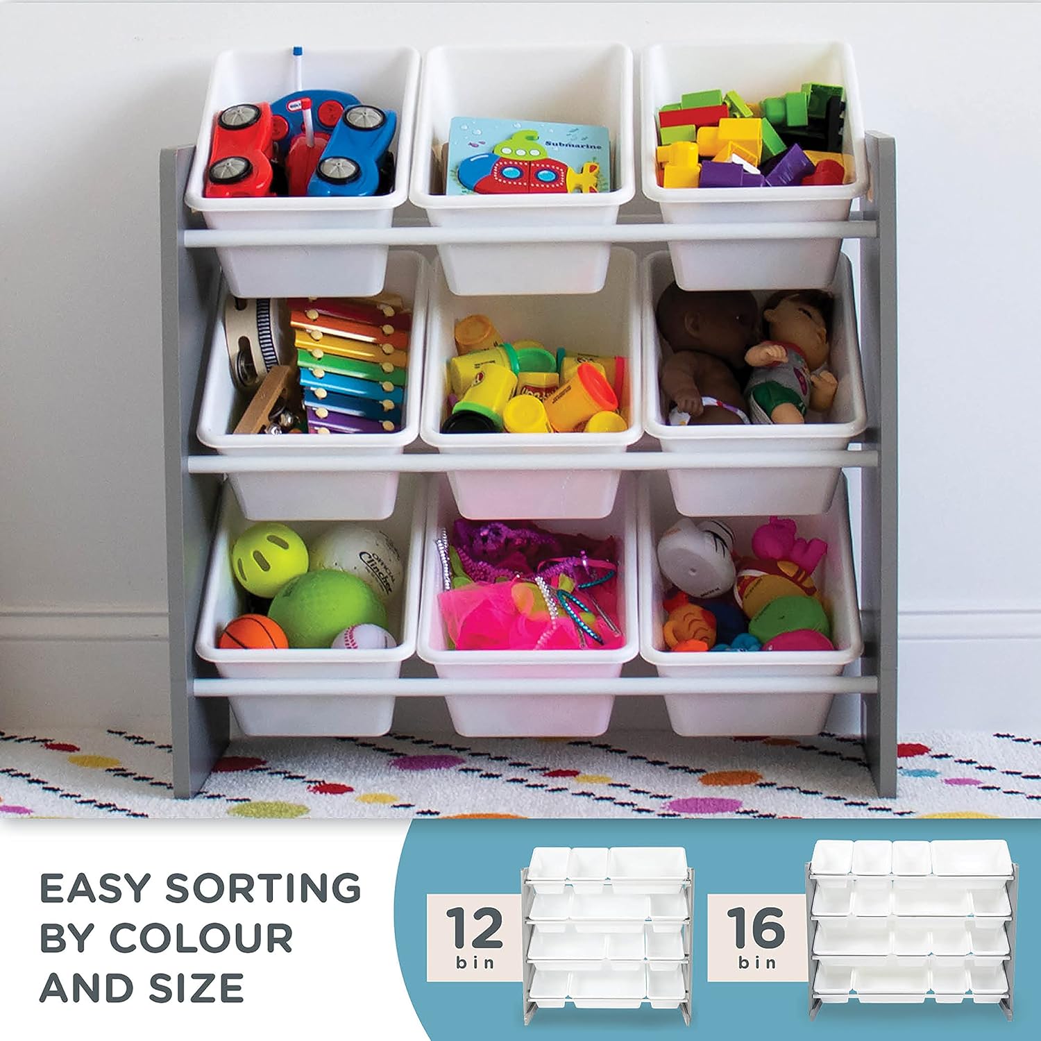 Grey/White Toy Organizer, 9 Bin Storage, 24" Tall