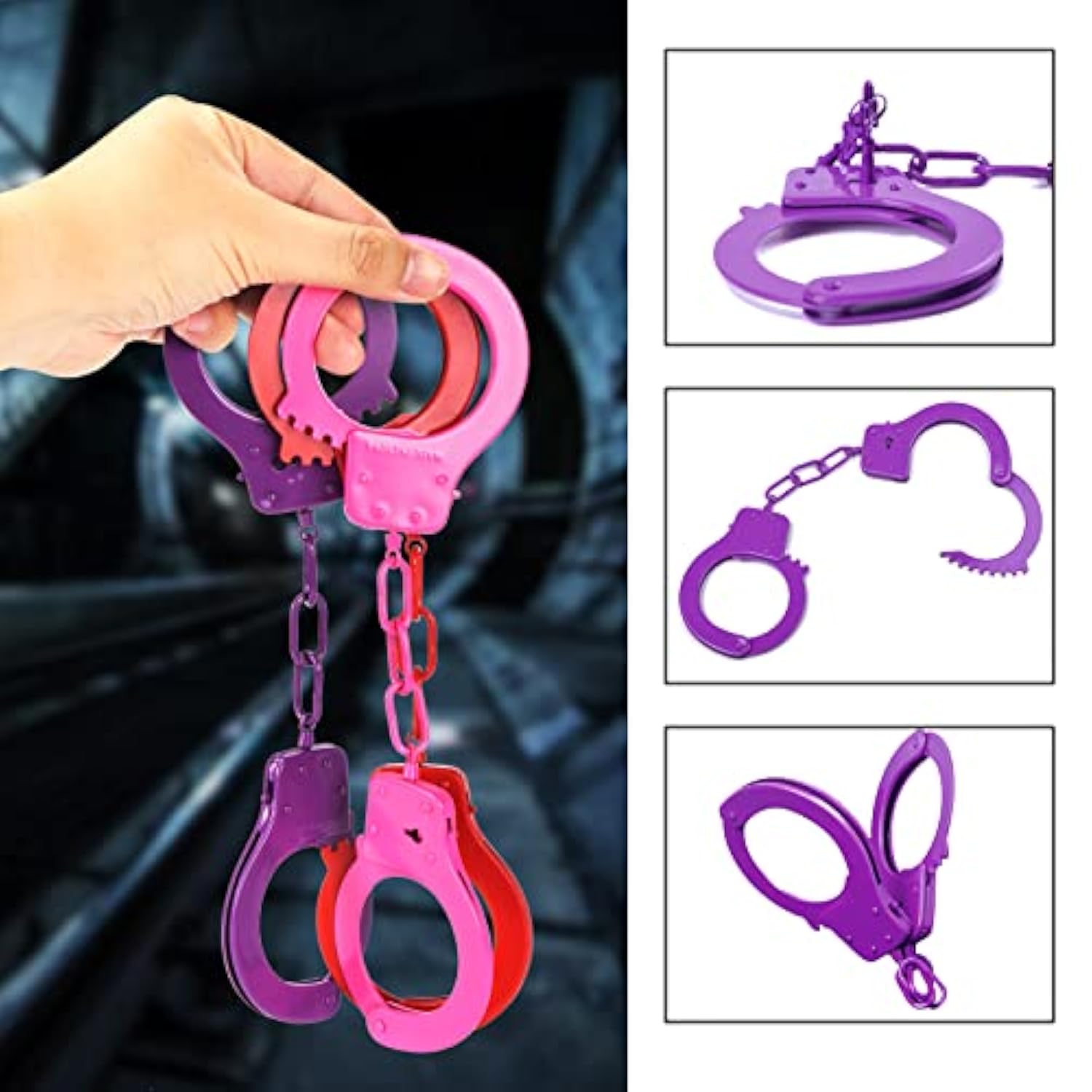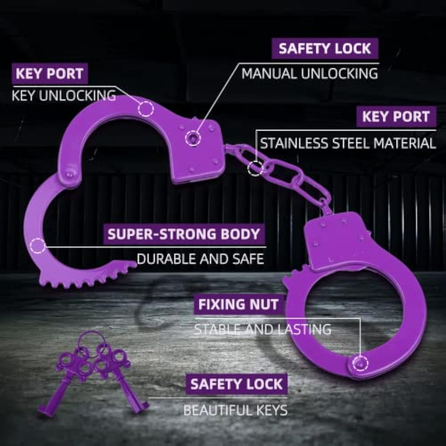 Handcuffs Double Lock Steel Police Edition Professional Grade Handcuffs,Hand Cuffs Cop With Keys (Purple)