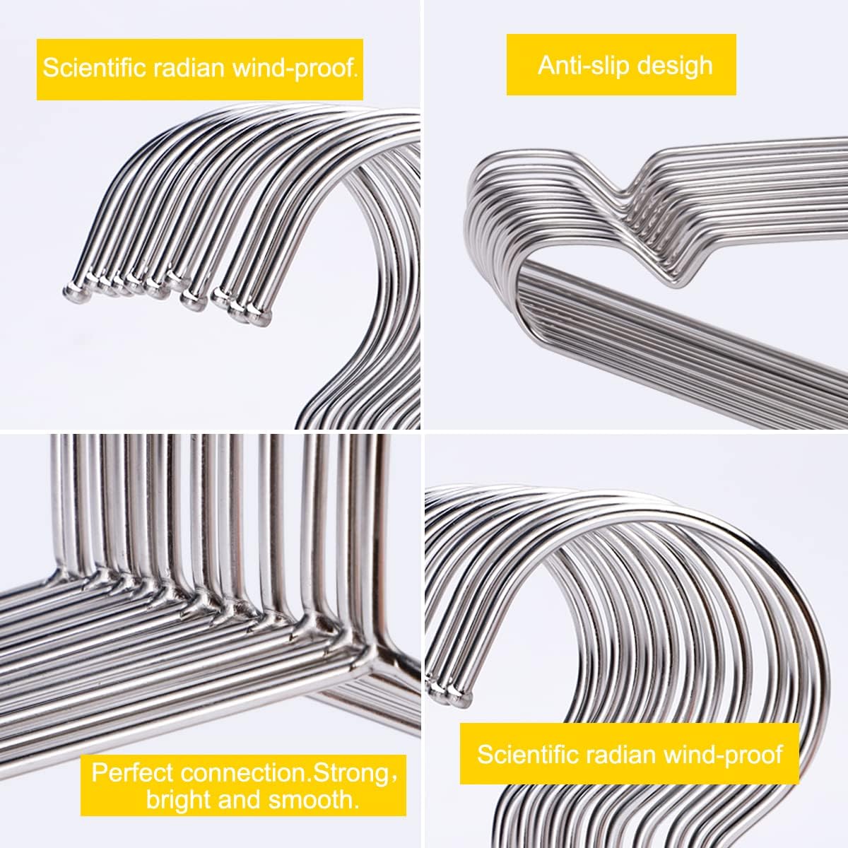 - Clothes Hanger - Unlike plastic hangers, wooden hangers, velvet hangers or felts hangers, our pants hangers made of 100% stainless steel with features of waterproof, anti-rust, anti-deformation, and anti-fading, are suitable for bathroom, closet, wardrobe, bedroom, cloakroom, laundry room, clothing stores, etc. The standard size: 16.5*7.6 in.