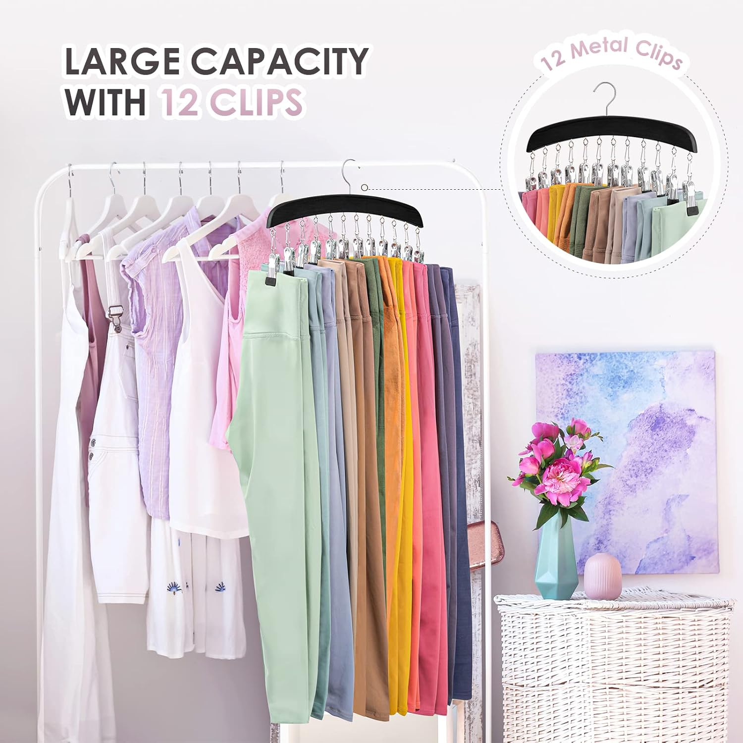 - 👖 Space Saver: Comes in a pack of 2 leggings hangers, 1 hanger for 12 leggings by hanging them vertically, effectively utilizes the vertical space in wardrobe. You can fold each legging in half and clip them on as well, save much more closet and drawer space without clutter, such a simple but useful solution, especially for small closets.