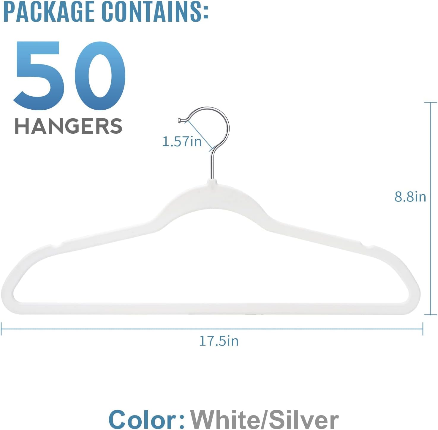 Hangers Non-Slip Velvet Hangers - Suit Hangers (50-Pack) Ultra Thin Space Saving Coat Hanger and Heavy Duty Clothes Hangers Hold Up-to 10 Lbs-White/Silver