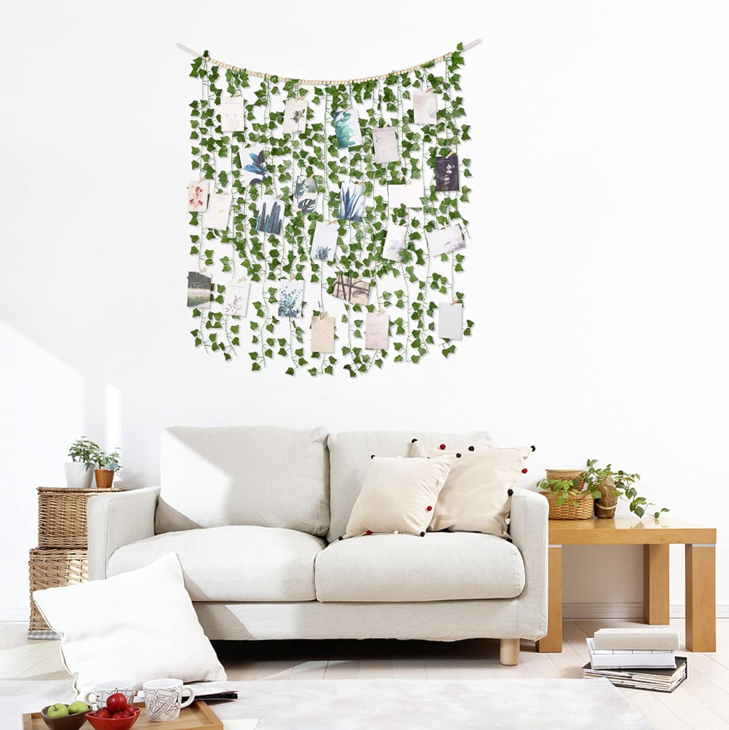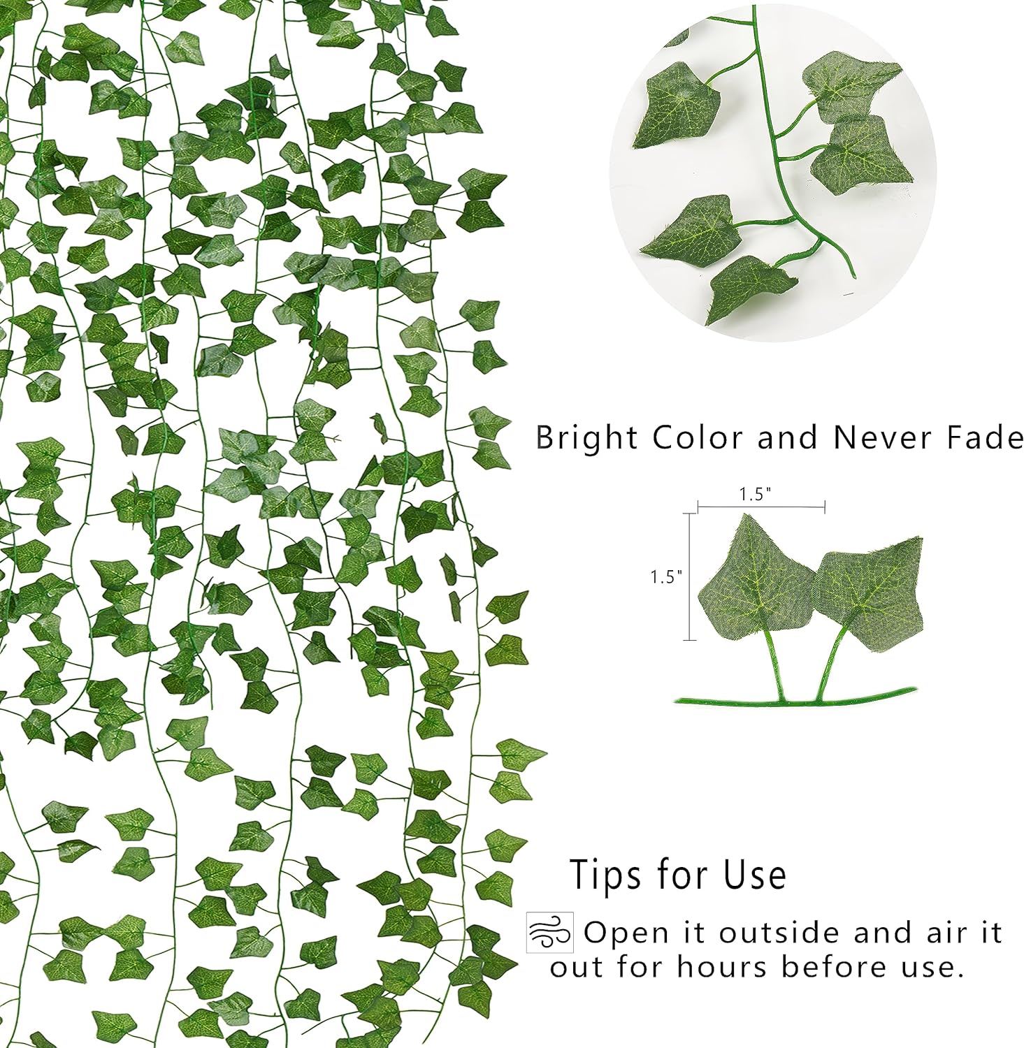 - The artificial fake ivy garland looks vivid, and does not easily be damaged or faded. Each vine is different in length and appears to be more layered. It will add a unique touch to any of your rooms. Tips: The green leaves vines may become lightly tangled during shipping, but they can be easily untangled.