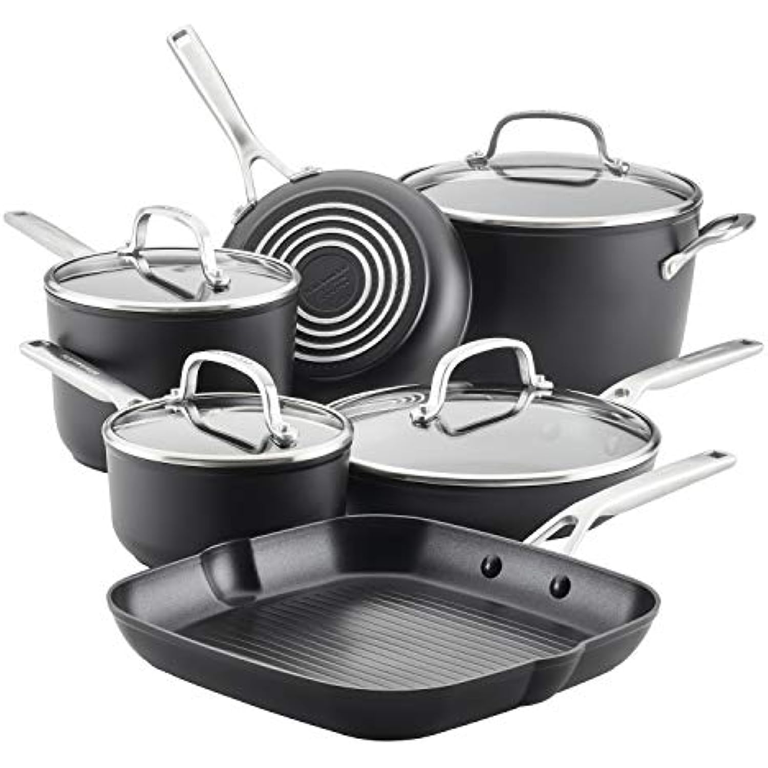 Hard Anodized Induction Nonstick Cookware Pots and Pans Set, 10 Piece