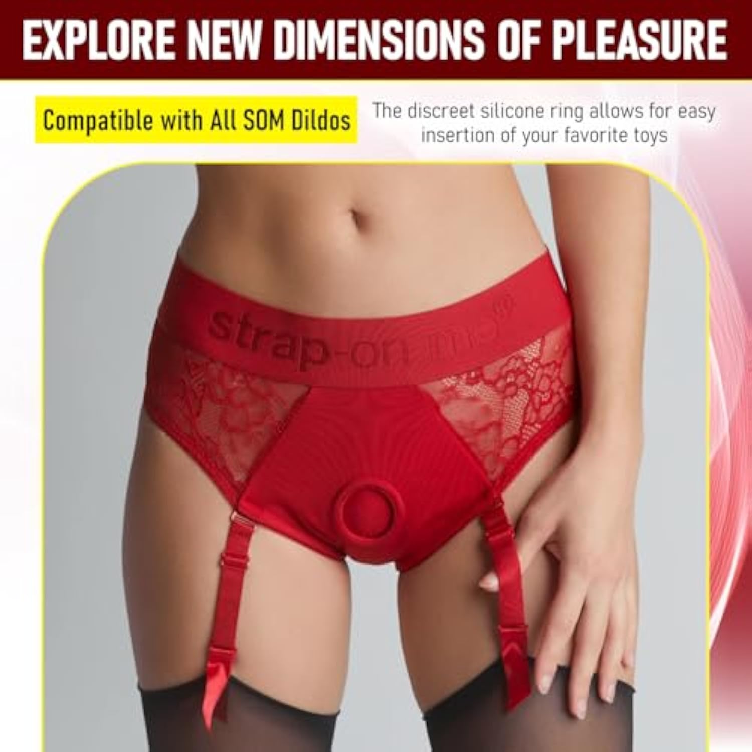 Harness Diva Red - Adult Sex Toys With Lace & Microfiber, Delicacy, Elegance, And Comfort. Ideal For Pegging Or Strap On Toys For Lesbians, Adjustable Strap & Stretchable