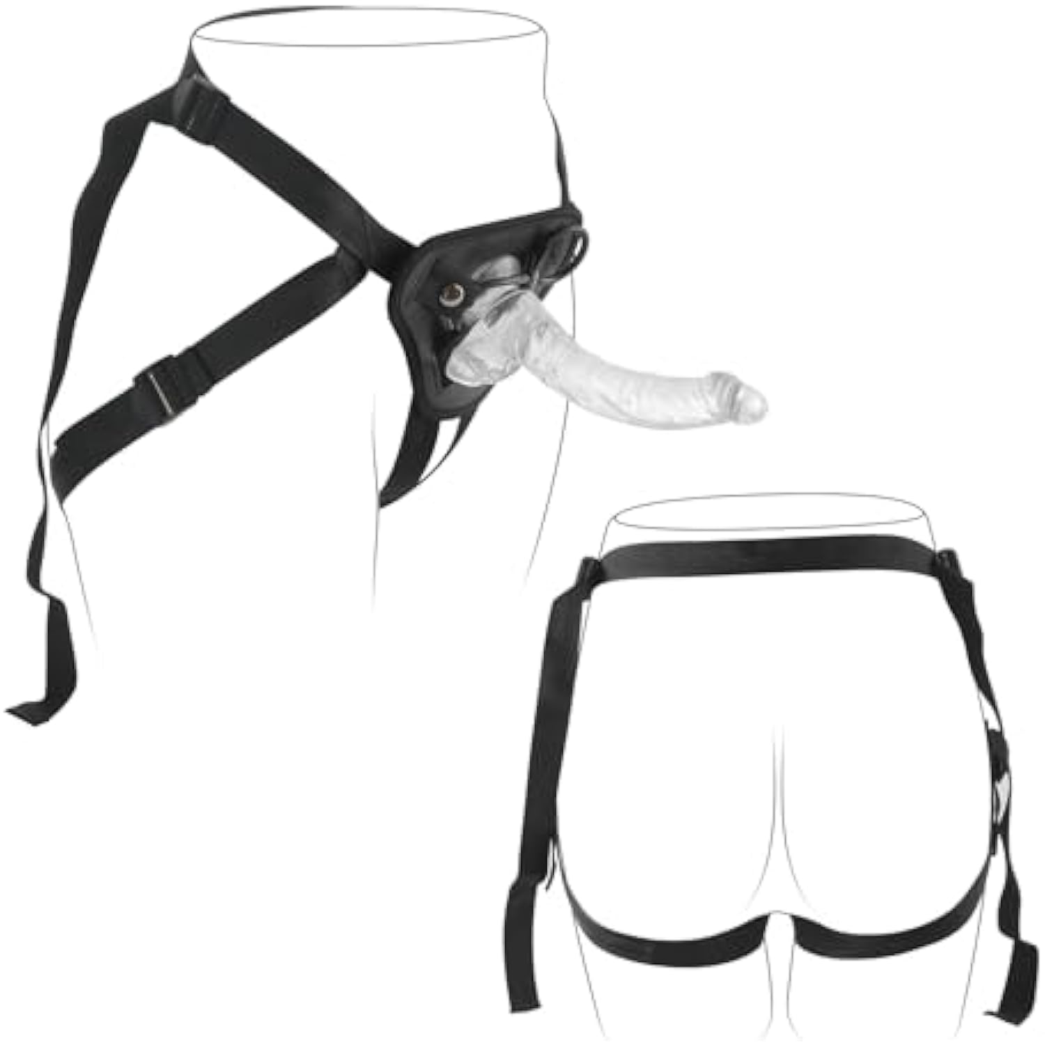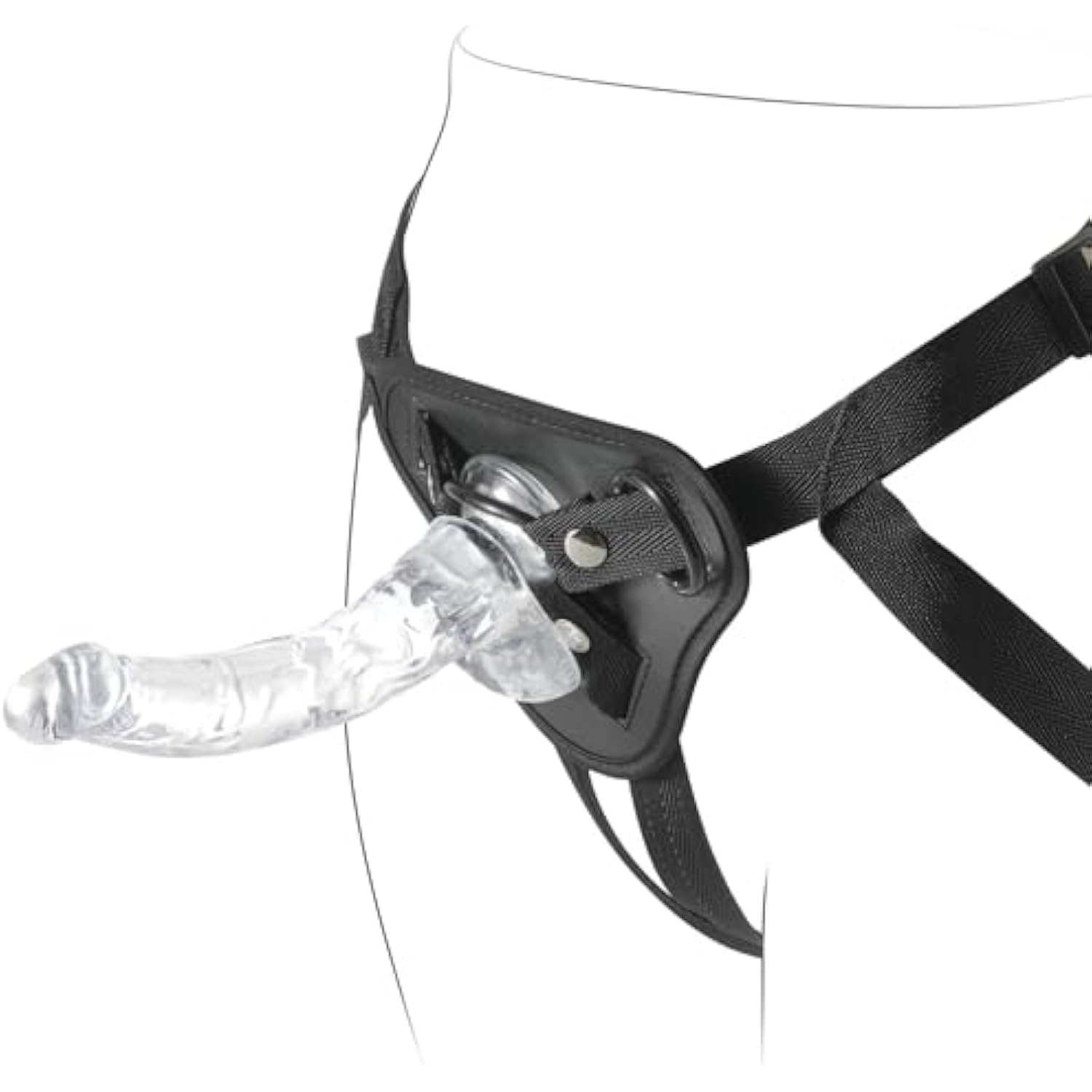 Harness & Strap-On Set, 6.7 Inch Realistic Clear Dildo Adult Sex Toy Female Masturbation Women Lesbian Beginner (S)