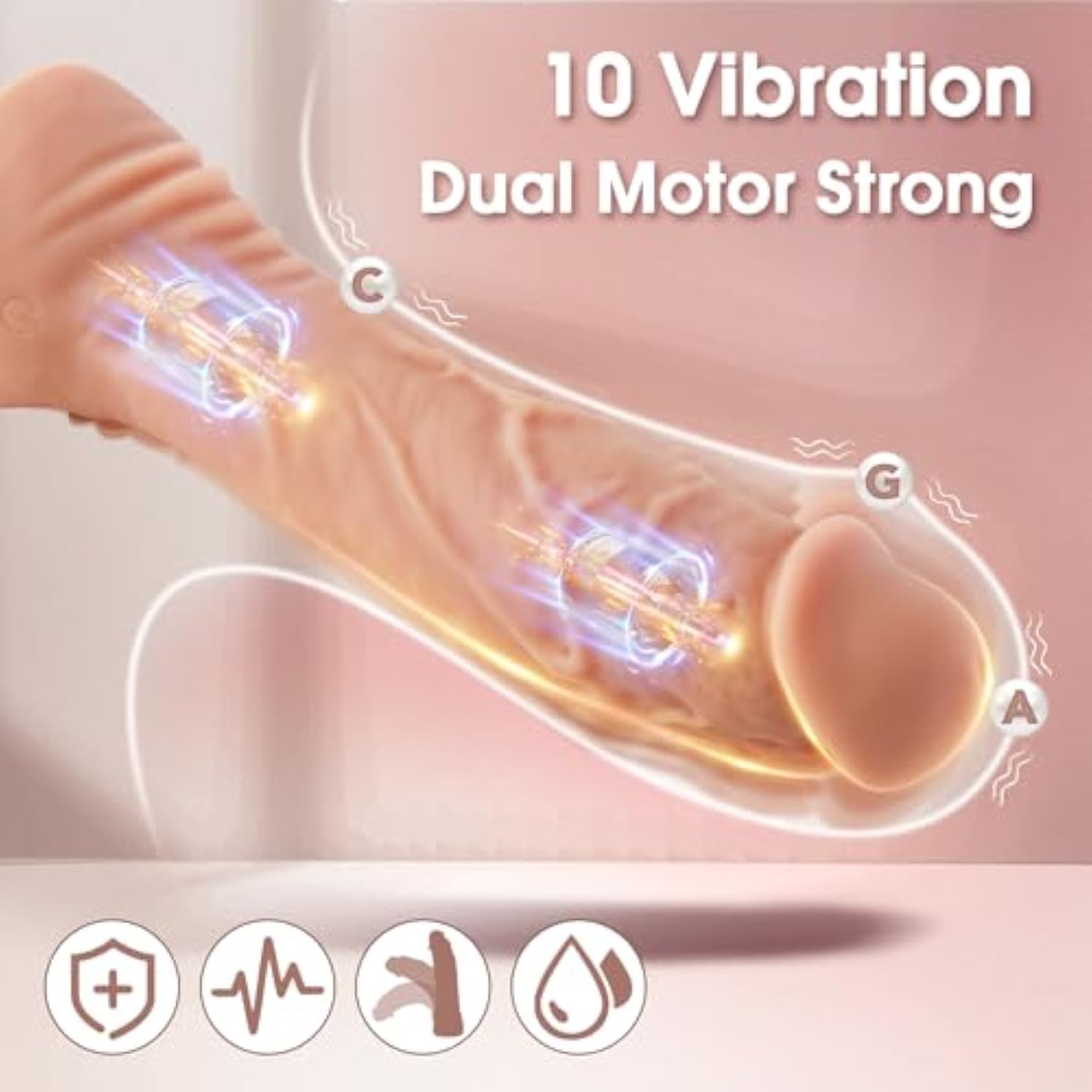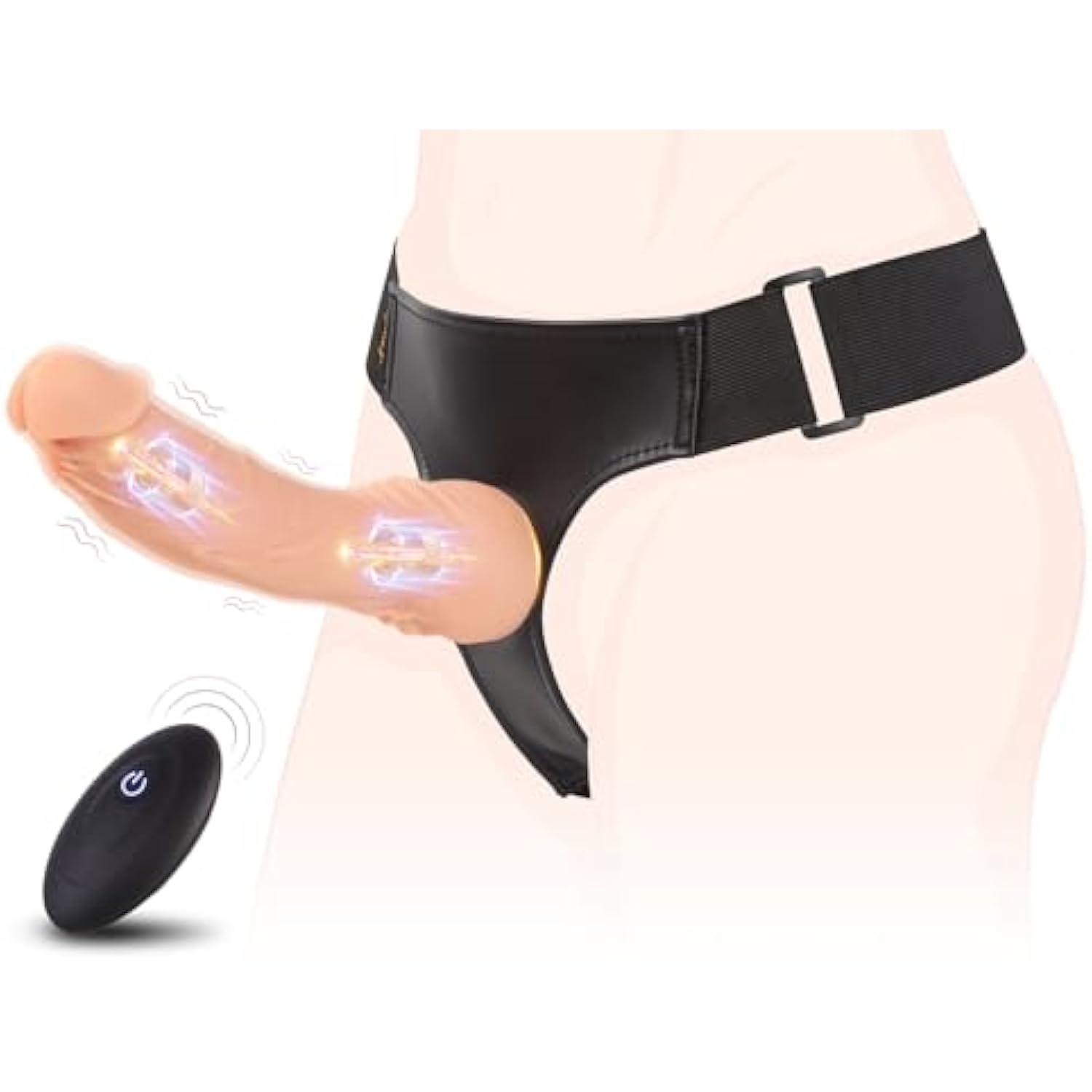 Harness Strap-On Vibrating Realistic Dildo - Wearable Strapless Strap-On Dildo With 10 Powerful Modes Silicone Anal G-Spot Stimulation Sex Toys For Female Couple Lesbian | Remote Control | Dual Motor