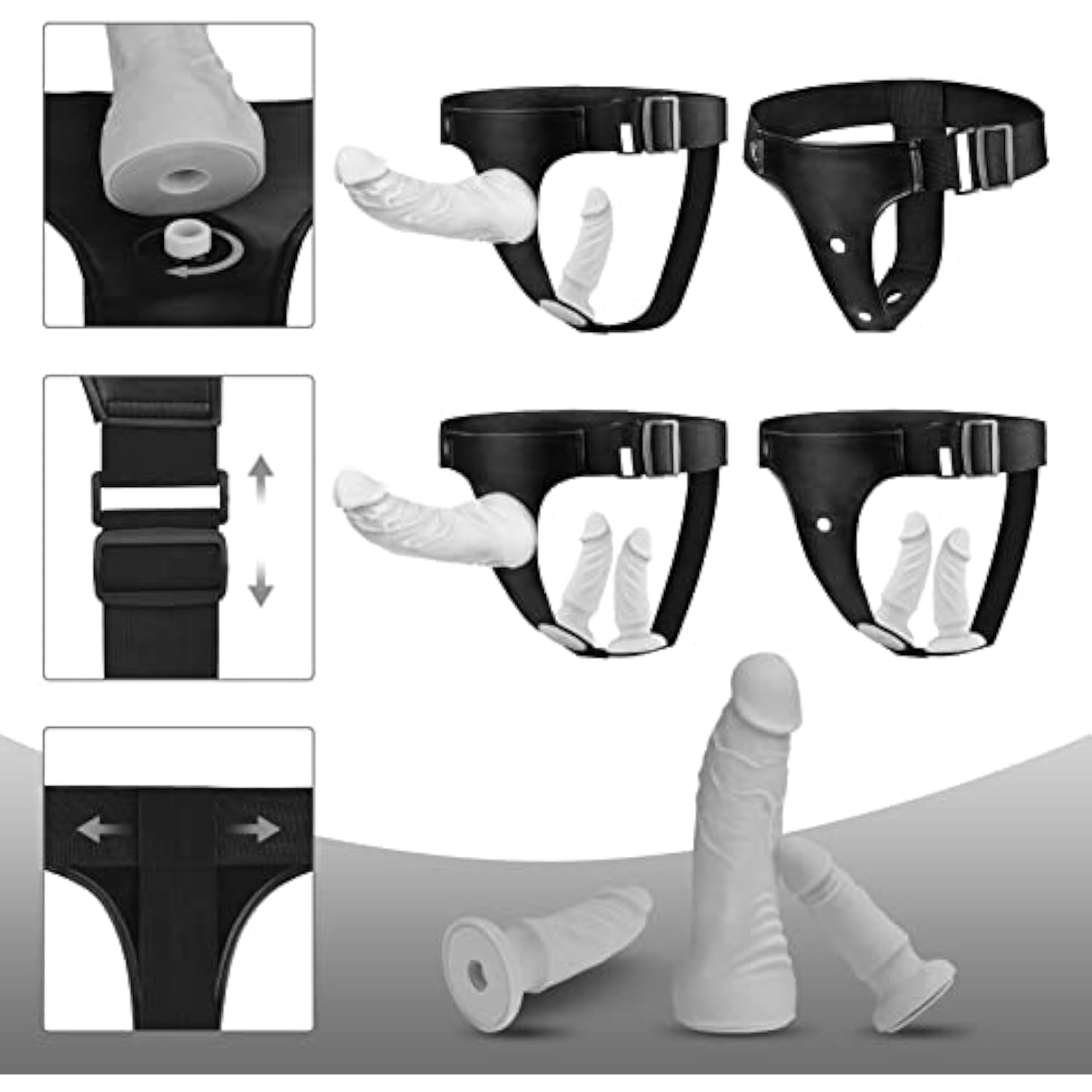 Harness Strap-On Vibration Realistic Dildos - Adjustable Strapless Strap-On Dildos With 10 Modes & 3 Dildos Silicone Anal G-Spot Stimulation Sex Toys For Women Couples Lesbian | Remote Control