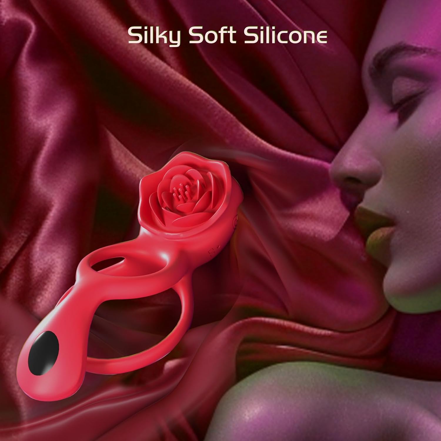 Dual-Ring Vibrating Penis Ring with Rose Stimulator & Testicle Massager