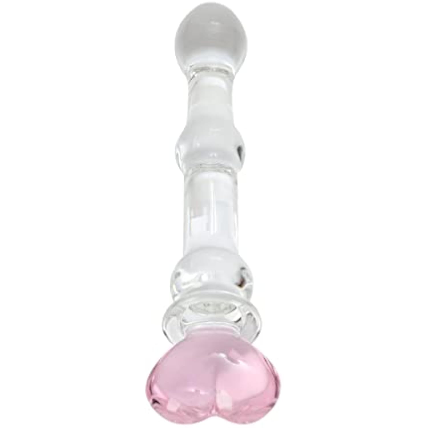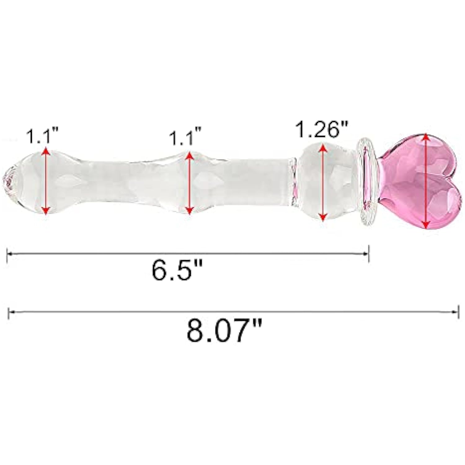 Heart Crystal Glass Pleasure Wand Dildo Penis, Pink