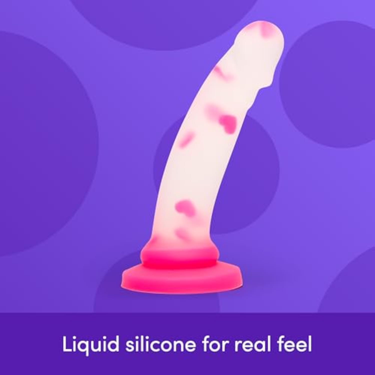 Heart Realistic Dildo | 8 Inch Suction Cup Dildo For Women | Liquid Silicone Curved Strap On Harness Compatible | Curved G Spot Stimulator | Adult Sex Toys For Couples | Clear & Pink
