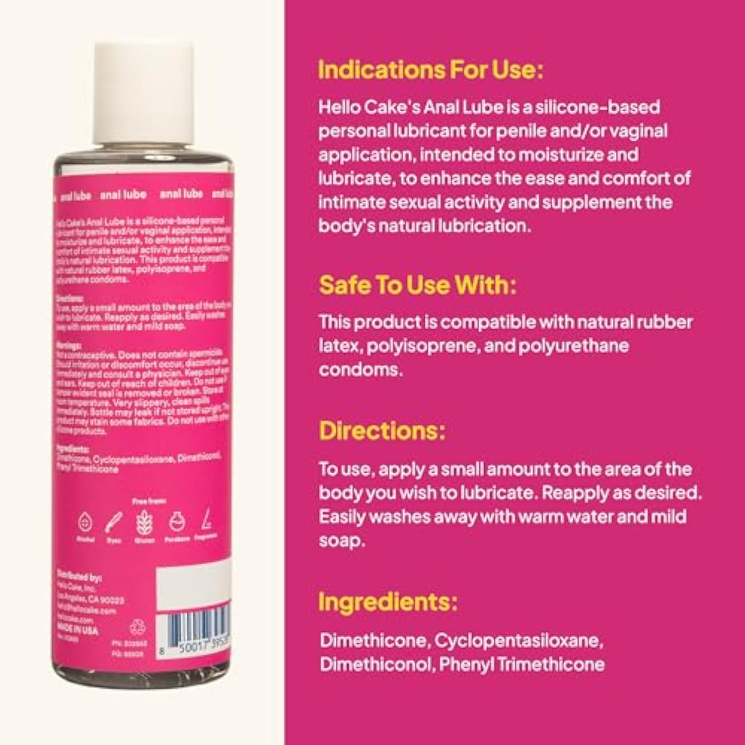 | Long-Lasting And Ultra Slippery: This Super-Glide Silicone-Based Personal Lubricant Is Formulated To Provide Extra Comfort And Cushion For All Your Backside Adventures. And Because It’S Waterproof, You Can Enjoy The Glide In The Shower, Pool, Hot Tub, And More. Lasts As Long As You Do, Without The Need To Re-Apply. Just Slide In And Enjoy. | | No Messy Cleanup: Leave The Sticky Lube In The Past! Our Lube For Women, Men, And Couples Gives You All Of The Silky Smooth Glide With None Of The Ick. Cleanup Is A Breeze, Just Use Soap And Water To Clean Up Any Spills. | | Made Of High Quality Silicone: ’S Anal Lube Is Made Of Premium High-Quality Silicone And Is Free From Dyes, Glycerin-Free, Paraben-Free, Sulfate-Free, Alcohol-Free, And Gluten-Free. | | Condom-Friendly: This Personal Lubricant Is Versatile And Safe To Use With Natural Rubber Latex Condoms, Polyisoprene, And Polyurethane Condoms, And Plays Well With Non-Silicone Adult Toys. | | Made In Usa: 'S Anal Lube Is Proudly Made In The Usa. | |