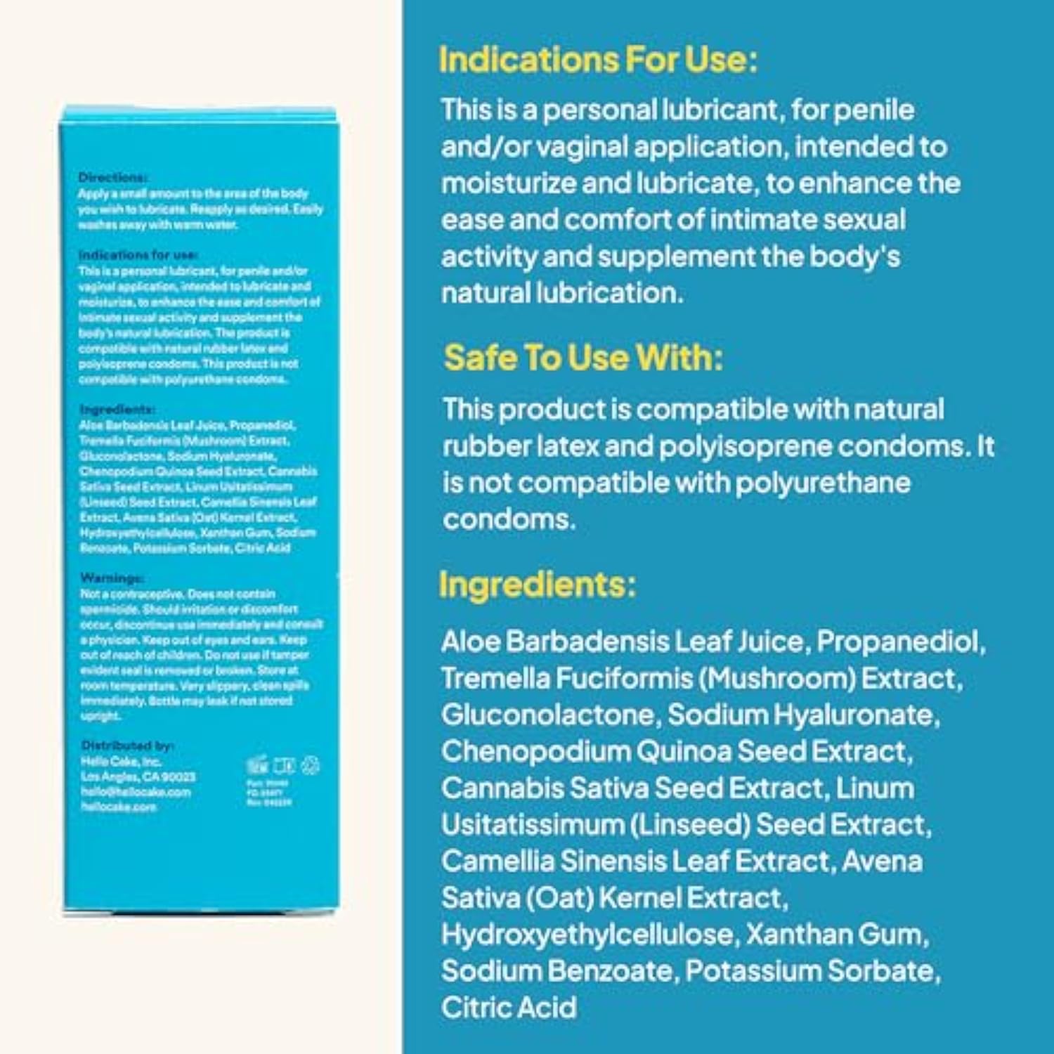 Hello Natural Lube - Aloe-Based Organic Personal Lubricant - Hydrating, Hypoallergenic, Ph-Balanced, Non-Sticky, Condom Compatible, For Men, Women, & Couples, 3.3 Fl Oz
