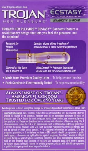 Her Pleasure Ecstasy Lubricated Condoms – 10 Count Pack- Designed for Maximum Pleasure – Unique shape enhances sensation for a more natural feel.