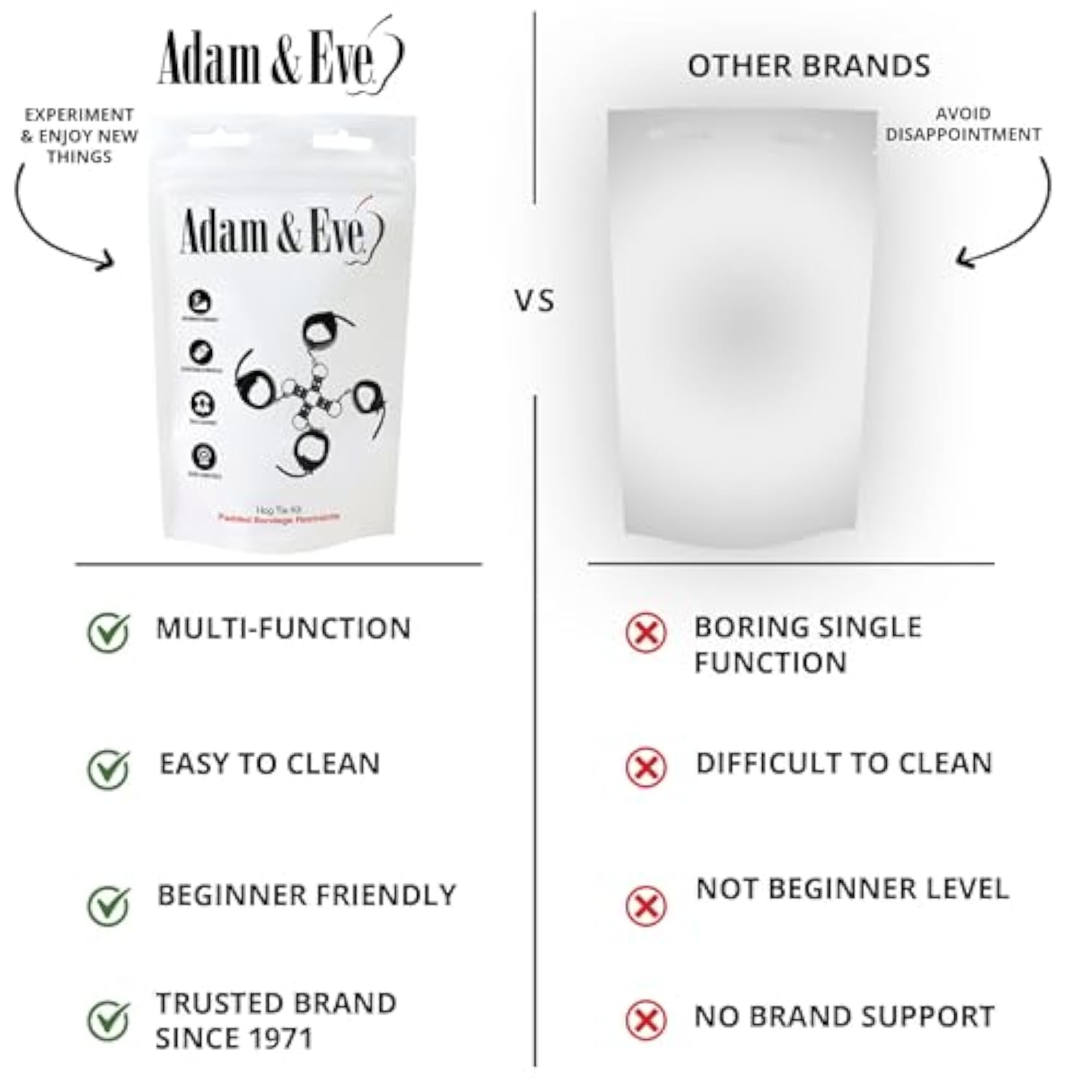 | Experience Full Body Restraint With A Hog Tie: Take Your Bondage Fantasies To The Next Level With Adam Eve’S Hog Tie Kit. Designed For All Levels Of Bdsm Play, This Restraint System Secures Wrists And Ankles Together, Keeping Your Partner In Place For Thrilling Roleplay And Kinky Fun | | Adjustable Cuffs For A Custom Fit: The Set Includes Two Wrist Cuffs And Two Ankle Cuffs, All Fully Adjustable For A Snug Yet Comfortable Fit. Whether You Prefer Tight Restraint Or A Little Wiggle Room, These Cuffs Allow You To Tailor The Experience To Your Desires While Ensuring Maximum Control | | Soft Faux Fur Lining For Added Comfort: Lined With Plush Faux Fur, These Cuffs Prevent Chafing And Discomfort, Making Them Perfect For Extended Play Sessions. The Luxurious Lining Keeps Restraint Play Sensual And Enjoyable While Adding An Extra Layer Of Comfort And Indulgence | | Vegan Leather And Metal Hog Tie Connector: Crafted From Durable Vegan Leather With A Sturdy Metal Connector, This Hog Tie Set Is Built For Repeated Play. Easily Clip The Cuffs To The Central Connector Or To Each Other For Versatile Restraint Options, Allowing Endless Bondage Possibilities | | Trusted Usa Brand Since 1971, Adam Eve Is Committed To Providing High-Quality Lubricants And Superior