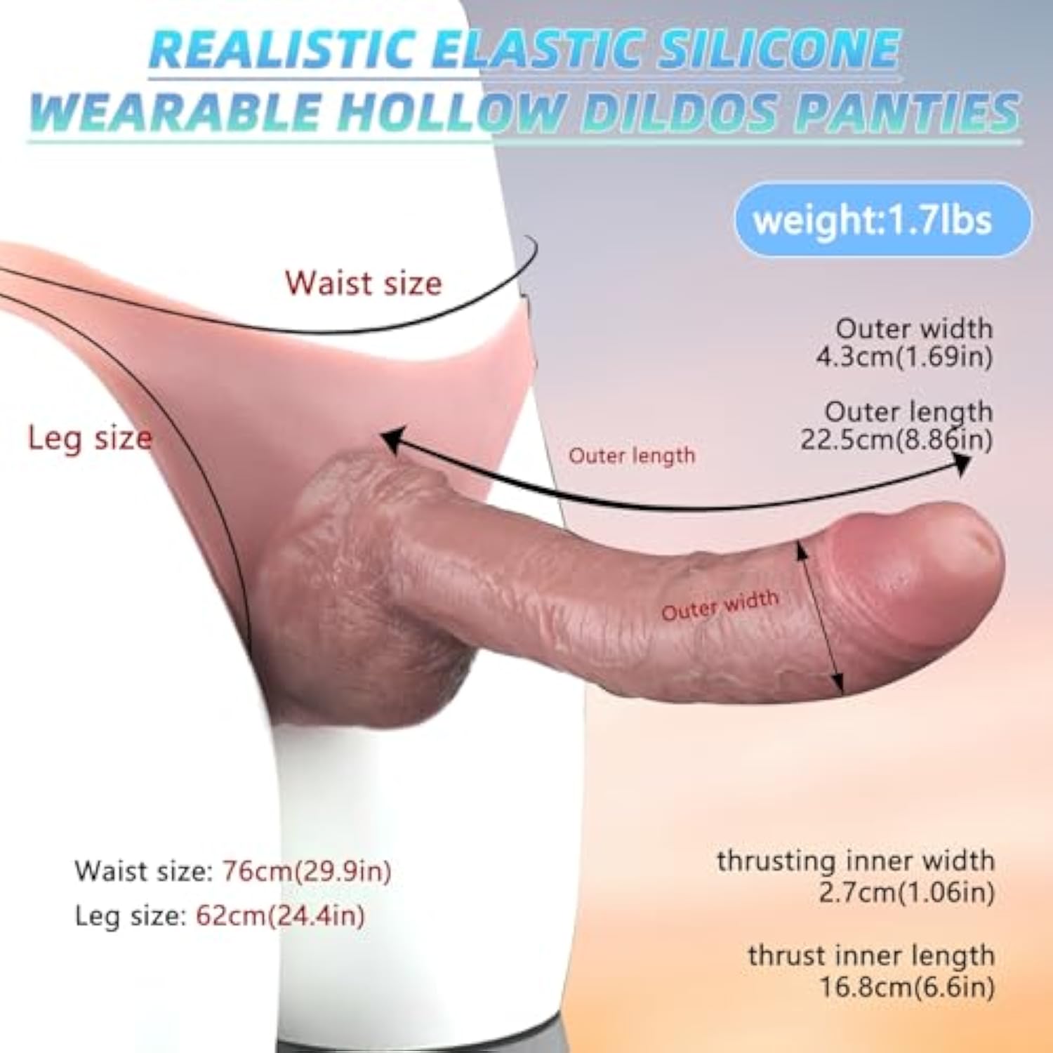 Hollow Penis Sleeve Dick Extender, Silicone Wearable Dildos Panty,Mens Cock Sleeve Enlarger, Realistic Strap On Harness For Adult Couple Pegging Toys