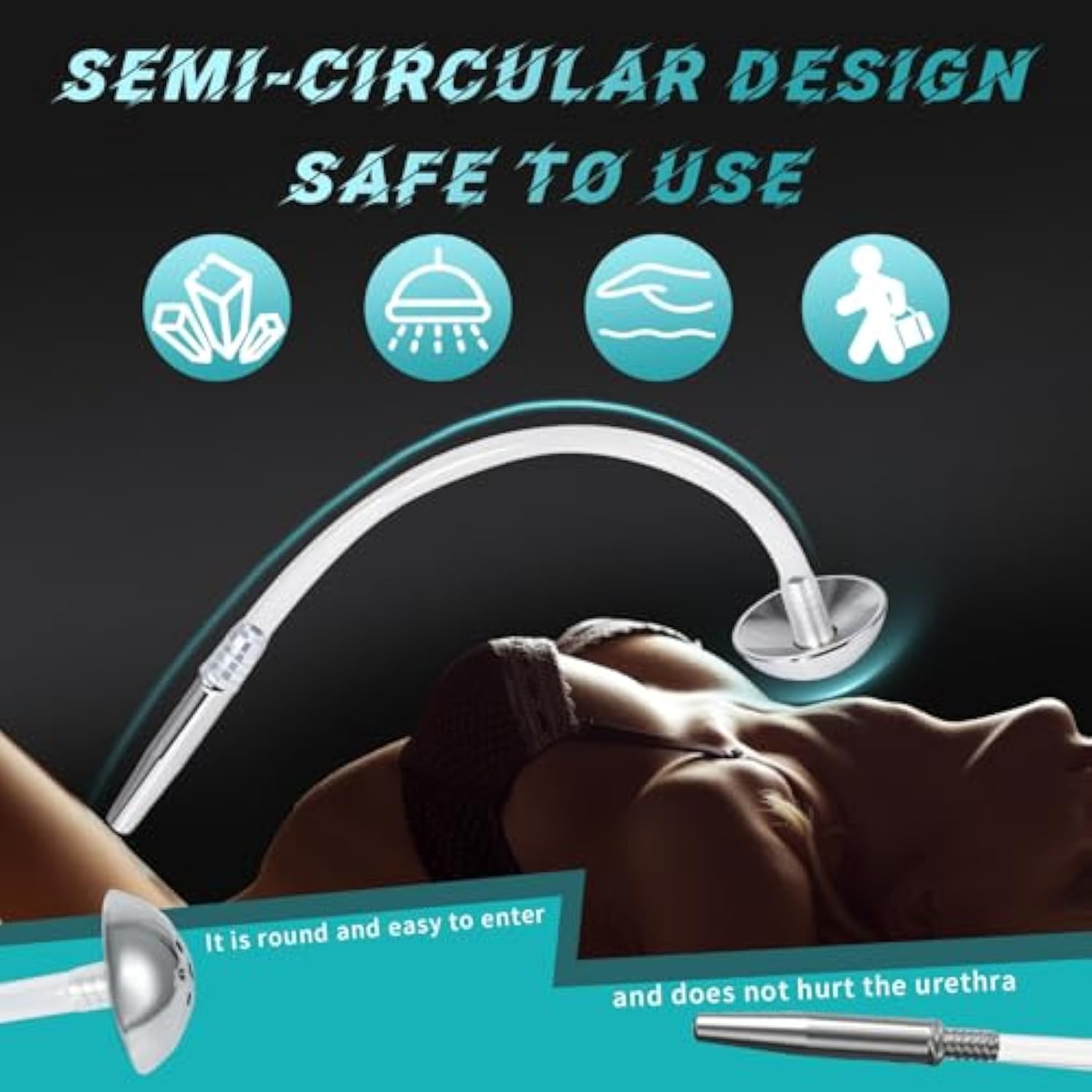 | High-Quality Materials: This Urethral Plug Uses A Silicone Hose, Which Is Durable And Of Good Quality. The Top Is Made Of High-Quality Stainless Steel, With A Smooth Surface And No Extra Burrs. | | Unique Design: The Top Of This Urethral Plug Is A Mushroom Shower Design, And The Liquid Flows Out Through The Hollow Soft Silicone. The Design Is Unique And Easy To Use. | | Soft And Flexible: This Catheter Has A Hollow Probe Shaft, A Hollow Silicone Tube And A Stainless Steel Shower Head, Which Is Ideal For Urethral Dilation And Penis Masturbation. | | Easy To Clean: This Urethral Plug Is Easy To Clean. After Use, Wash It With Clean Water And Dry It In A Cool Place. It Is Not Large And Is Also Convenient To Carry When Traveling Far Away. | | Note: Disinfect It Before Use To Avoid Urethral Infection During Use. You Can Add Some Lubricant When Using It, And Use It Carefully And Slowly To Avoid Hurting Your Body. | |