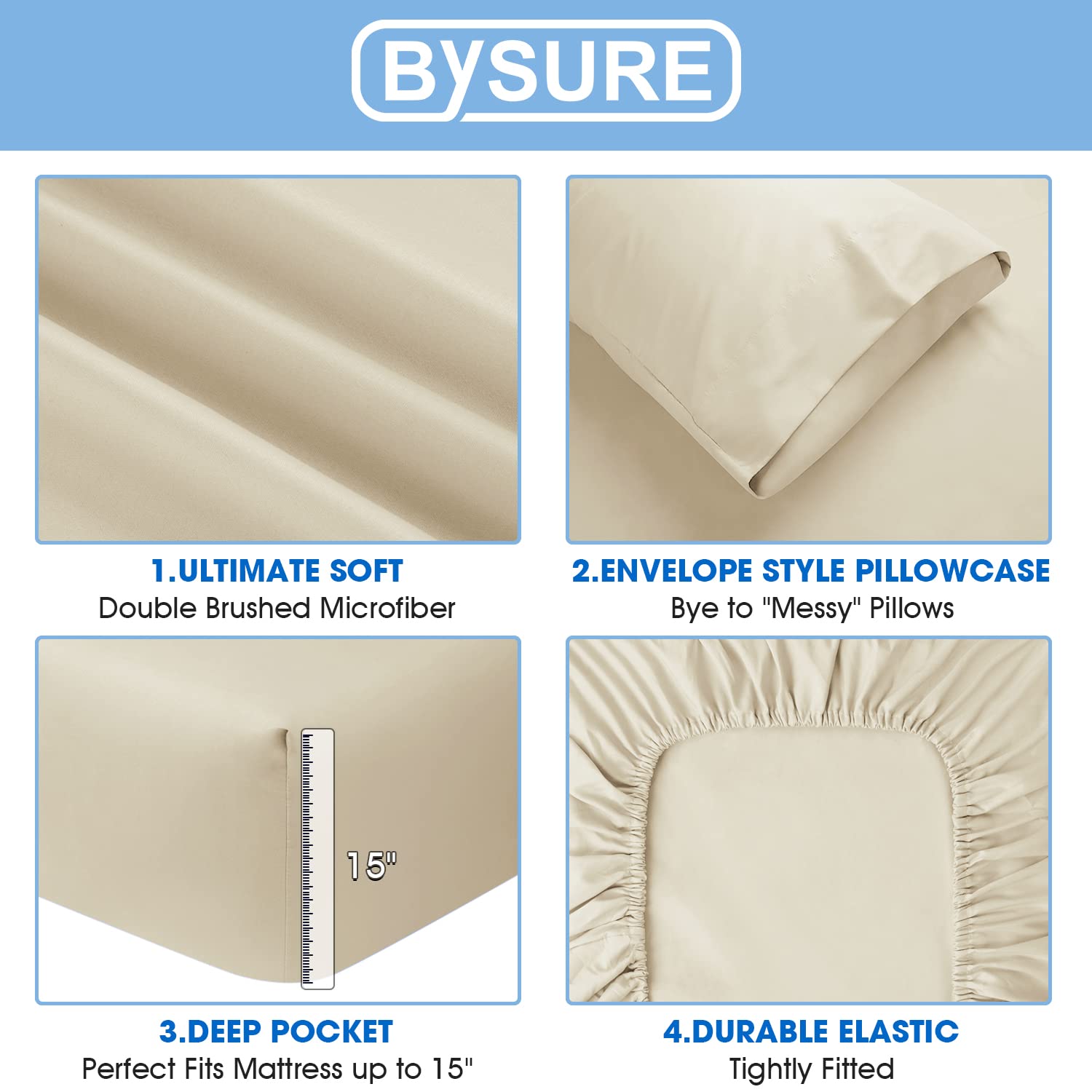 Hotel Luxury Bed Sheets Set 6 Piece(King, Cream/Beige) - Super Soft 1800 Thread Count 100% Microfiber Sheets With Deep Pockets, Wrinkle & Fade Resistant