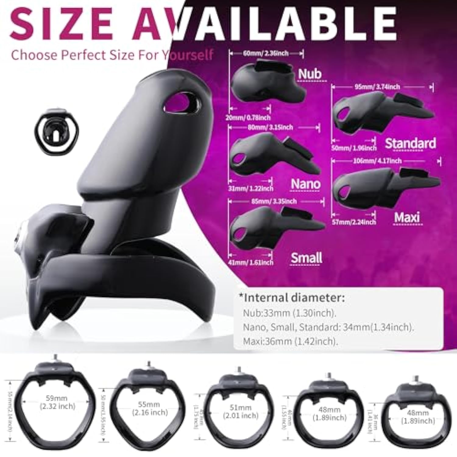 | Skin-Friendly Material- The Resin Material Is Hypoallergenic And Safe?Allow Easy Cleaning And Maintenance?Surface Feel Smooth Against Skin?No Irritation Or Discomfort ?Resist Scratching Or Fading Over Time?Surface Remain Smooth After Extended Wear?No Any Special Maintenance Request. It Is Comfort For Extended Wear. | | An Innovative Design- The Ht-V5 Cage Design Allow Easy Urination Without Removal?Adequate Security And Restraint?Ventilation Effective For Preventing Odours?Allow For Discreet Use Under Clothing?It Is Discreet And Quiet, Minimizing Unwanted Noise Or Visibility. | | Clicklocked Key- It Comes With A Clicklocked Key, Sturdy And Durable Lock Mechanism?Ensure Secure Containment. It Is Difficult To Escape From Without A Key. | | A Safety Device- Its Locking System And Its Materials Makes It A Product That Is Nearly Indestructible. You Can Use The Device During Sports, Sleep On Your Stomach, Work And So On Daily Life. The Advantage Is The Comfort Provided By This Material Once It Has Reached The Temperature Of 36°C, Which Is Approximately The Body Temperature. The Cage Becomes Smooth And Silky, Perfectly Fitting The Body Shapes But Totally Preventing The Stimulation Of The Male Member. It Will Withstand All Your Desires While Remaining Firmly In Place. | | Five Different Ring Sizes- It Comes Multiple Size Rings For A Snug Fit,With 5 Different Ring Sizes Allow Users To Choose The One That Suits Them Best.The Diameters Available Of 5Rings Are 48Mm (1.89Inch), 48Mm (1.89Inch), 51Mm (2.01Inch), 55Mm (2.16Inch), 59Mm (2.32Inch). | | Replacement Parts- Replacement Key,Tube,Ring Readily Available For This Product,Replacement Parts Available For Long-Term Use. | | Private Package- All Items Are Accompanied By Flannel Bags And Packaged Privately With Discreet . Package Includes: 1 Cage, 5 Rings, 1Pair Of Key, 1 Sandpaper (For Polishing), 1Flannel Bags. | |